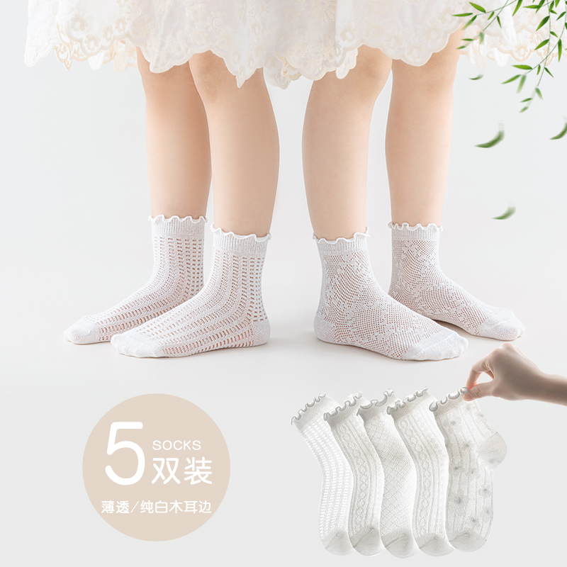 穿 袜夏天纯白配小皮鞋 女童袜子夏季 超薄网眼儿童木耳边公主凉鞋