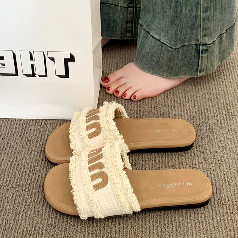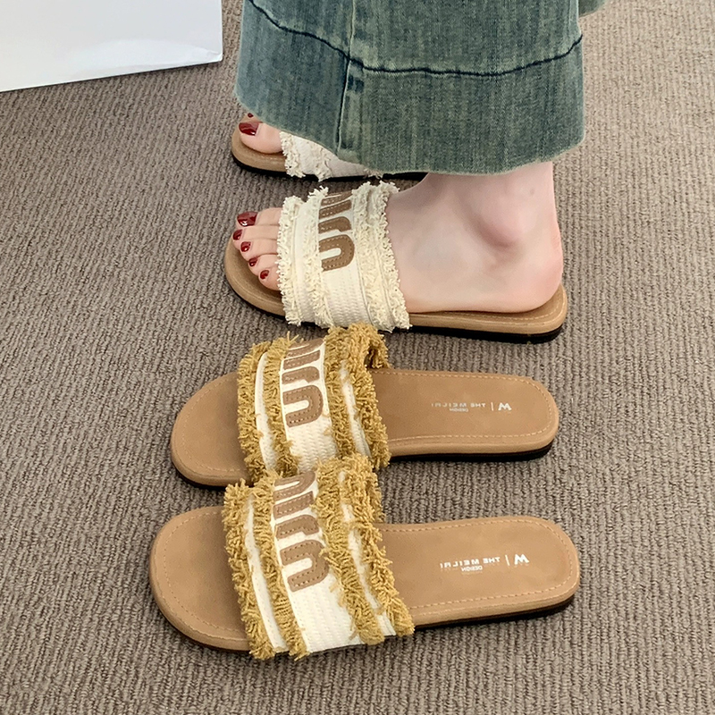 平底凉拖鞋 流苏小香风超火配裙子沙滩休闲一字拖 女夏外穿2025新款