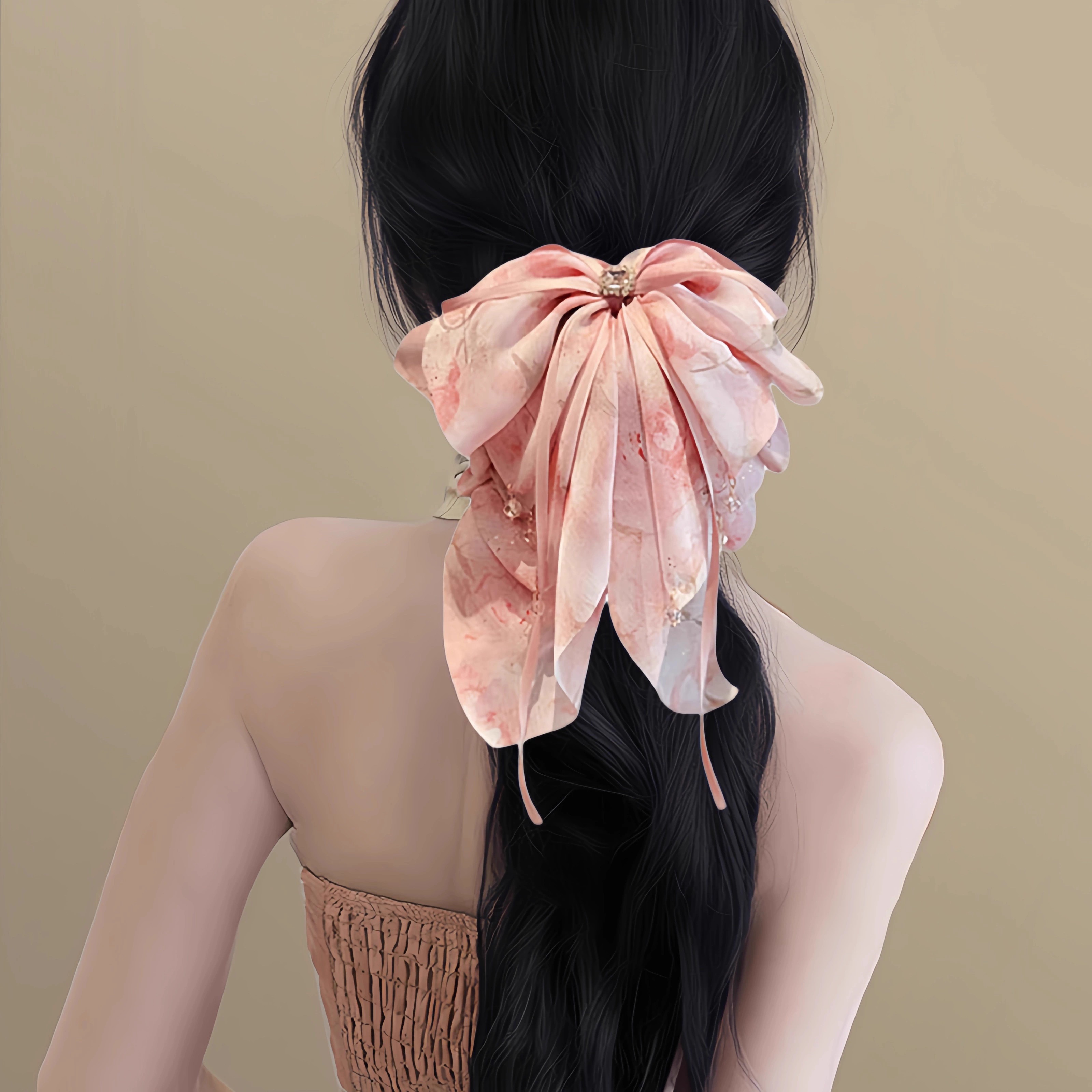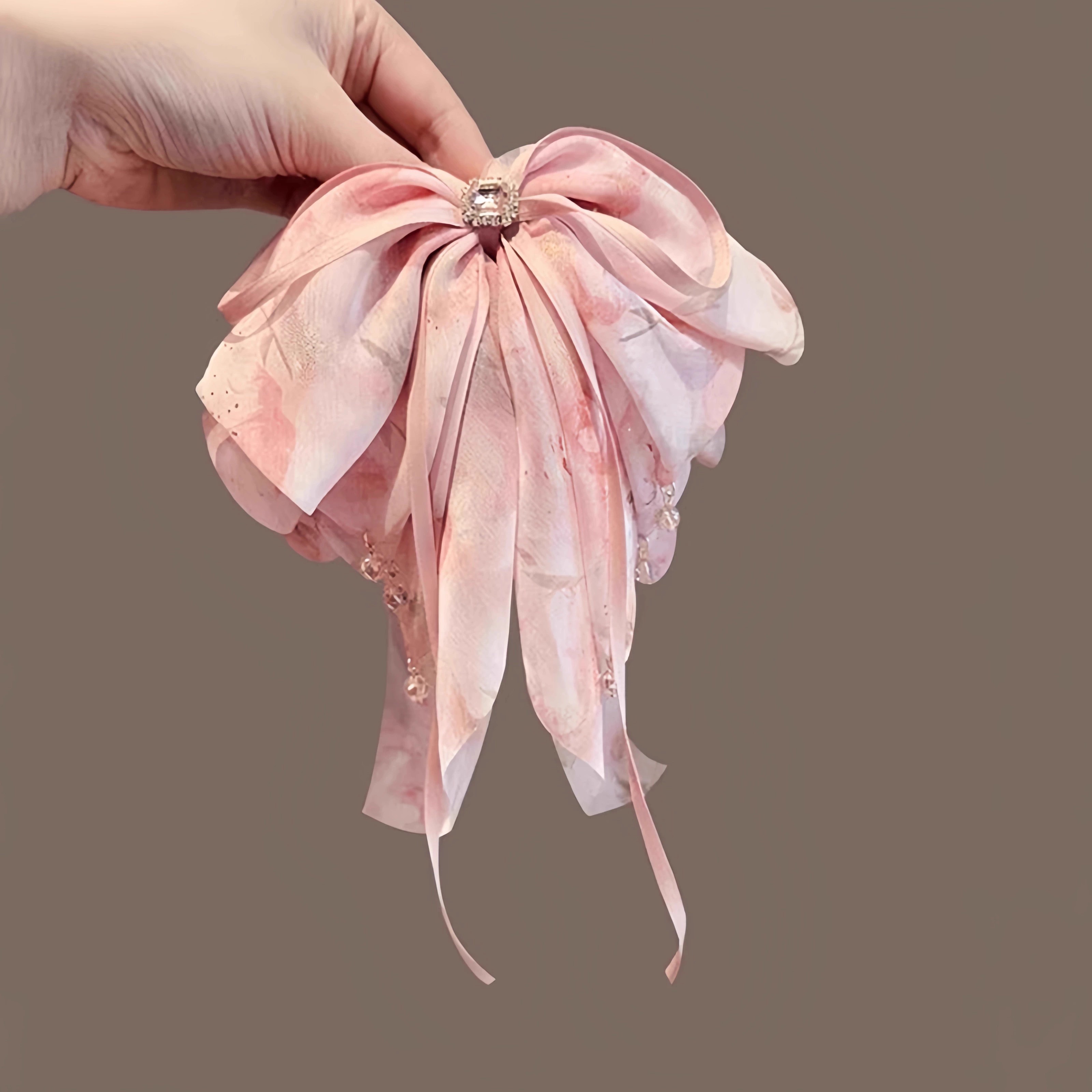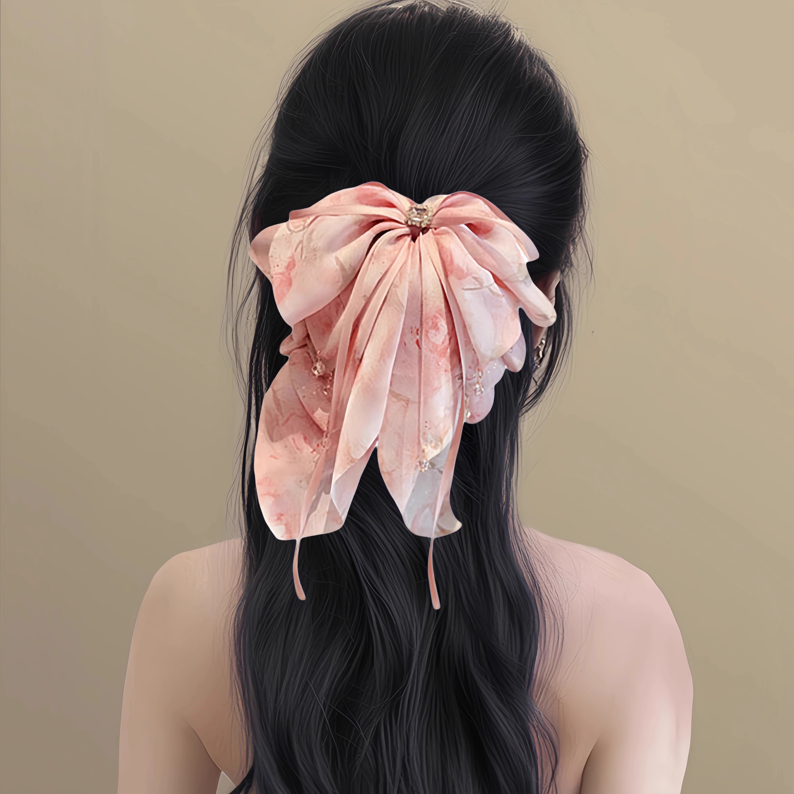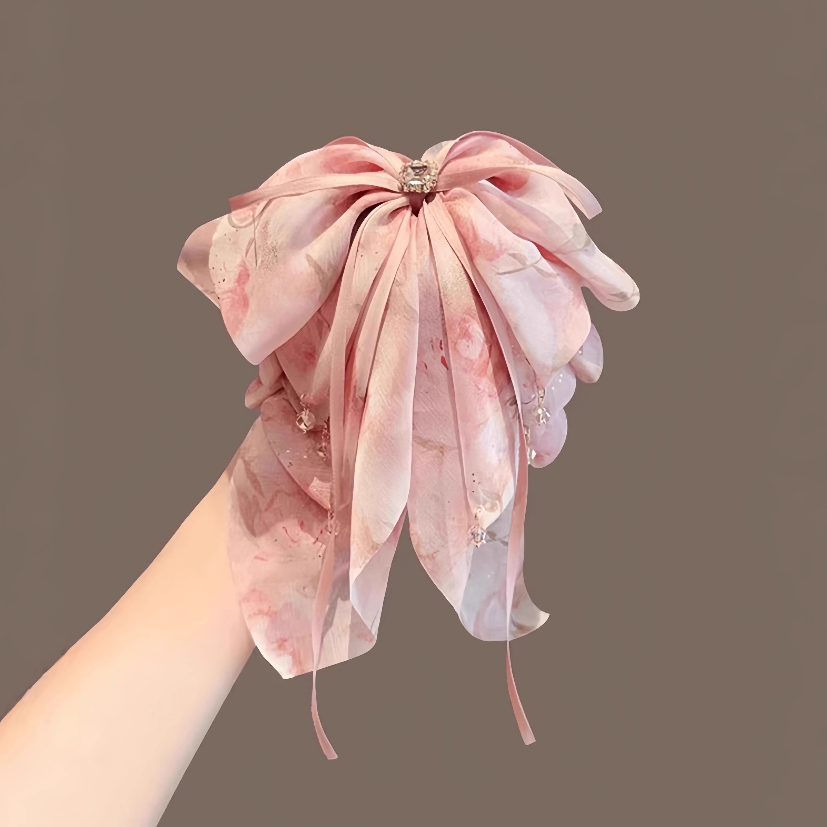 超仙甜美鲨鱼夹半扎发夹拎环 温柔粉花朵飘带马尾抓夹 法式 玫瑰