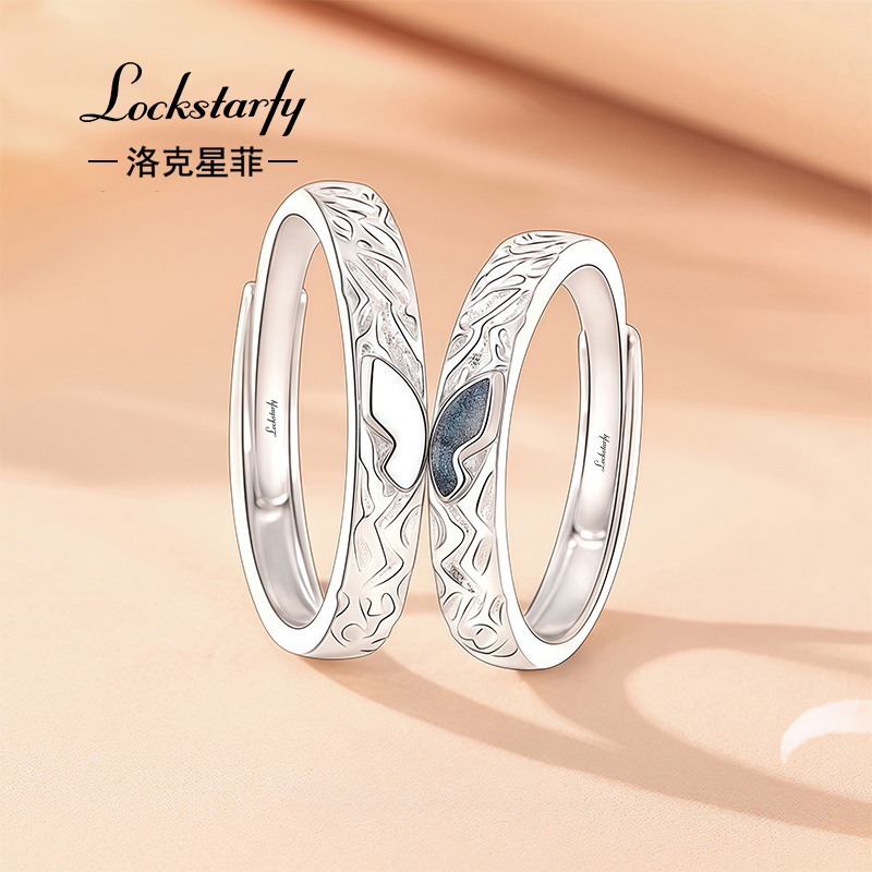 洛克星菲轻奢大牌比翼蝶情侣戒指七夕节送女友老婆礼物可调节对戒