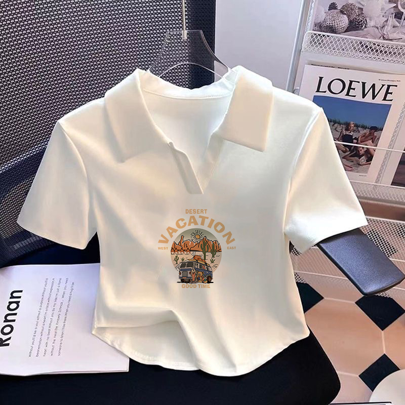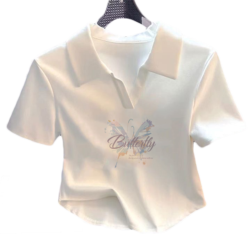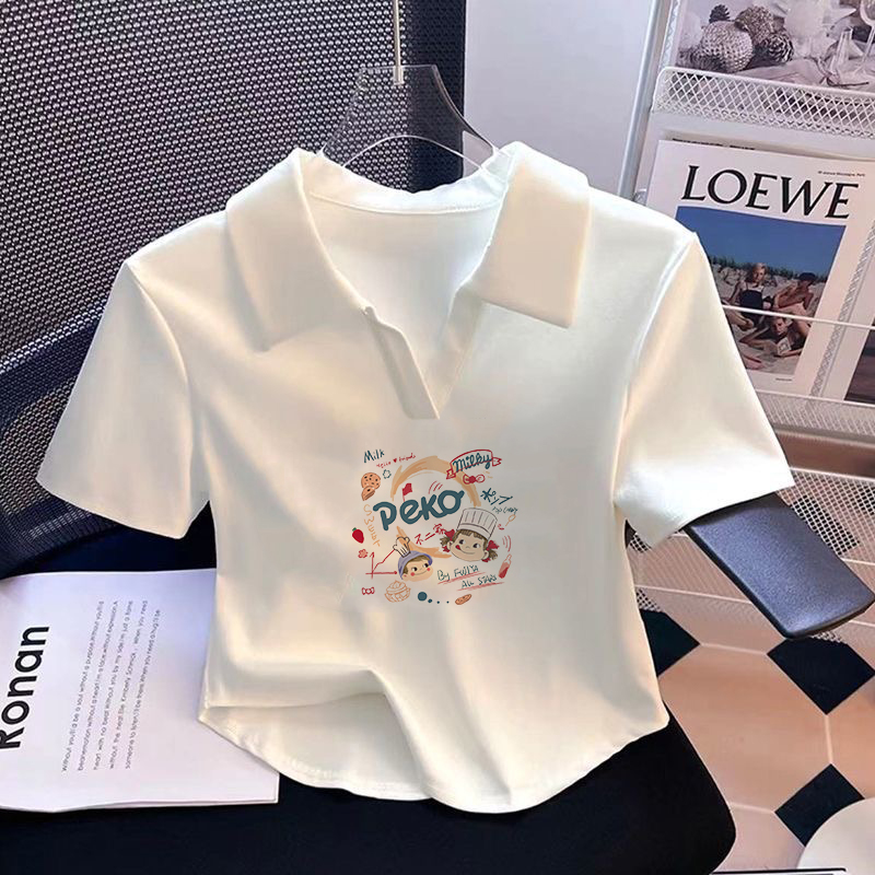 超火减龄修身 T恤女夏季 百搭上衣 白色纯棉正肩polo领短袖 2025新款