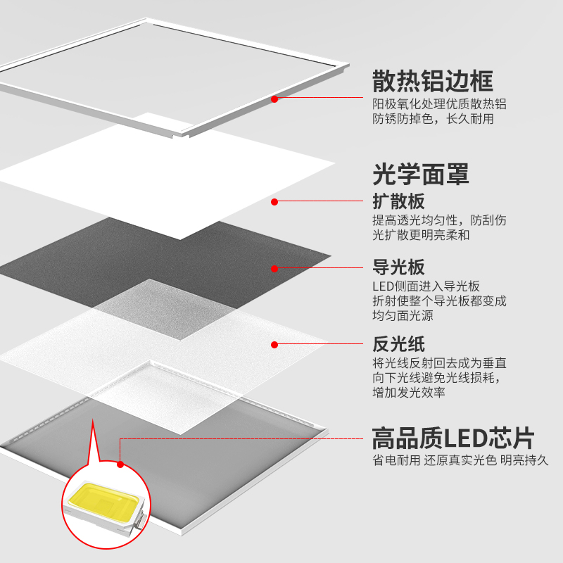 超薄集成吊顶灯595x595led平板灯60x60cm石膏板矿棉板专用面板灯