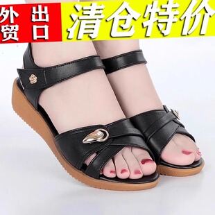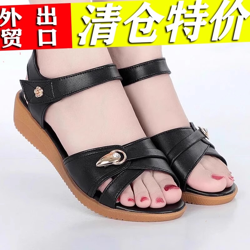 新款 中年软底防滑凉鞋 真皮凉鞋 子大码 2025年平底 女舒适妈妈鞋 夏季