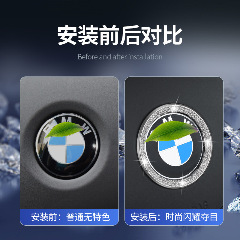 专用宝马i3方向盘装 35L一键启动按钮保护盖车内用品 饰钻贴eDrive