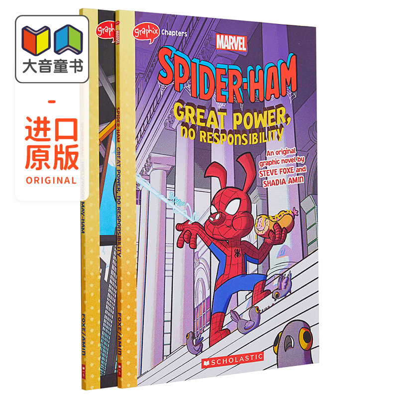 进口图书 大音 蜘猪侠2册套装 Spiderman Marvel 蜘蛛侠 学乐漫画小说 漫威 儿童图像图画小说 Spider 英文原版 Ham