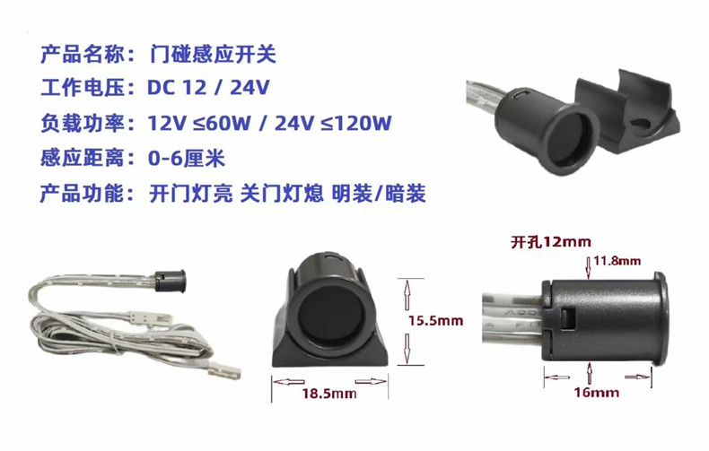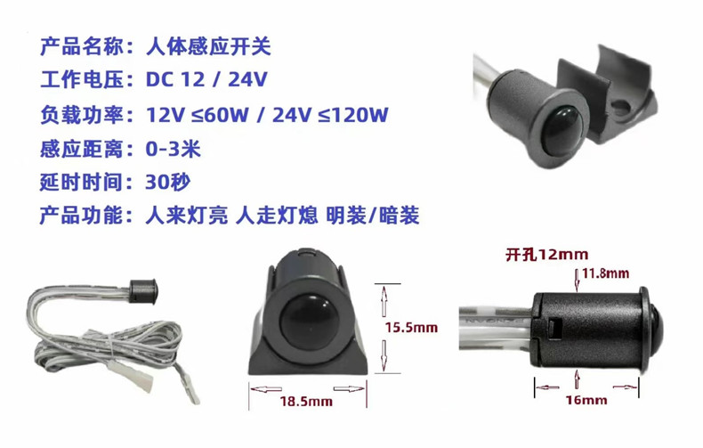 led灯带12V杜邦插头端子24V衣橱柜展柜灯条手扫触摸人体感应开关