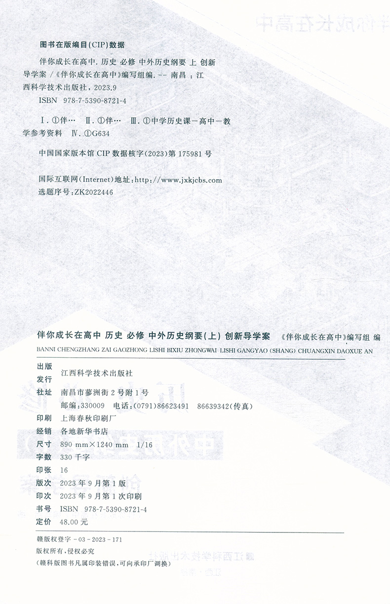 伴你成长在高中 江西科学技术出版 历史纲要上册下册 上海高中历史教辅书籍 社 创新导学案 2024新版