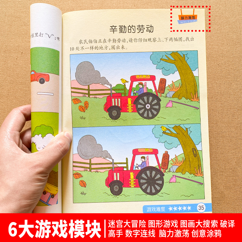 学前儿童专注力思维训练书 游戏书益智玩具3到6岁以上找不同迷宫4岁连线画5岁魔法线条贴纸书 提升孩子专注力