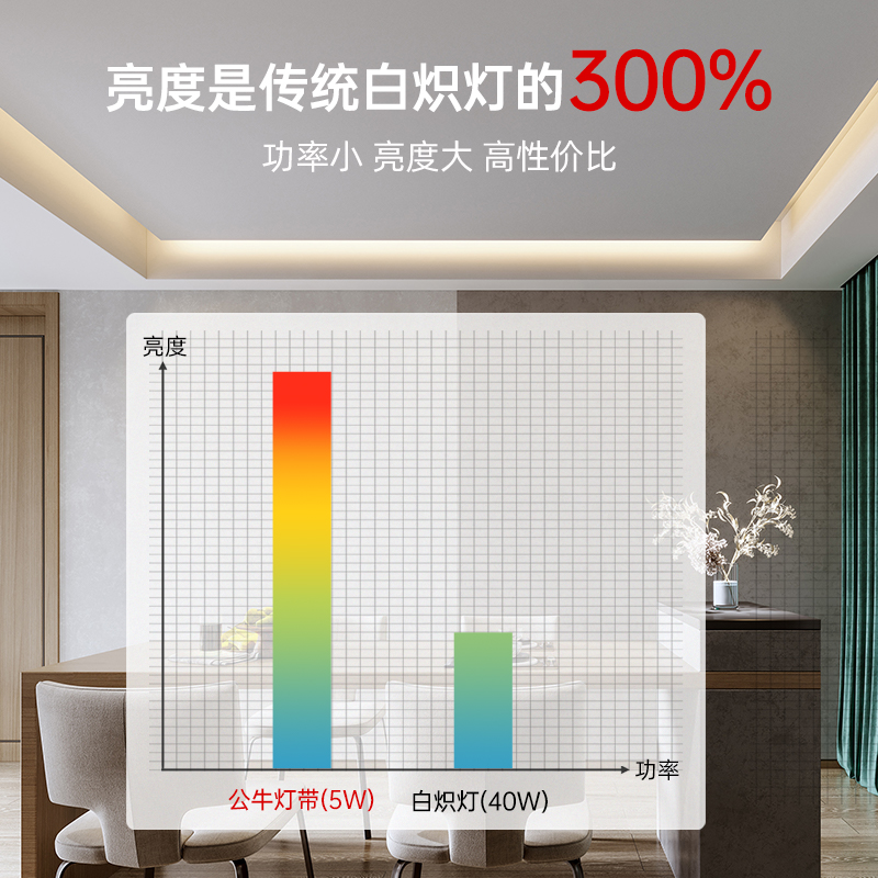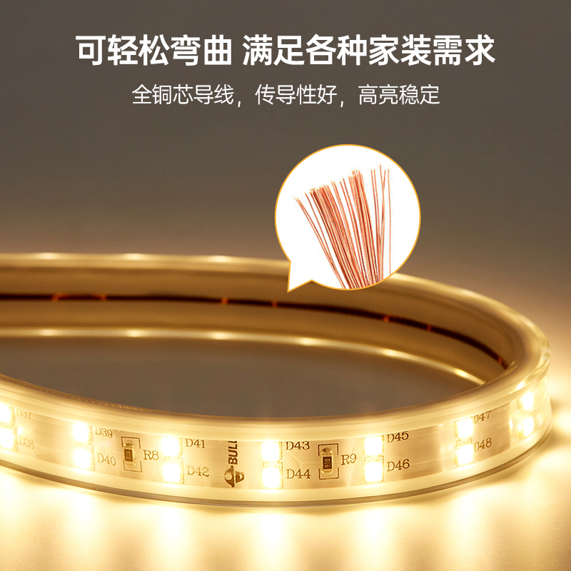 公牛LED灯带家用室内客厅卧室柔性吊顶220V线型软灯条三色氛围灯