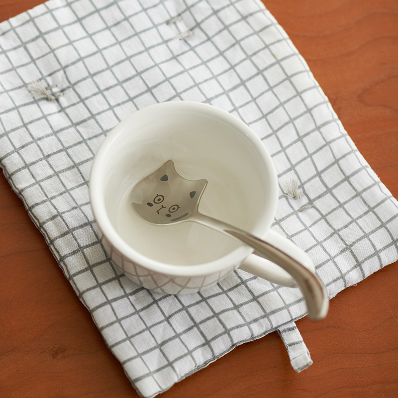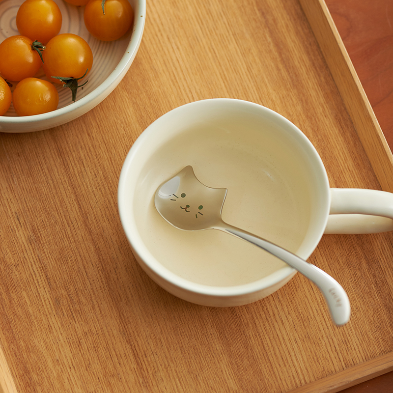 肆月 可爱猫咖啡勺304不锈钢长柄搅拌勺创意甜品勺精致调羹搅拌棒