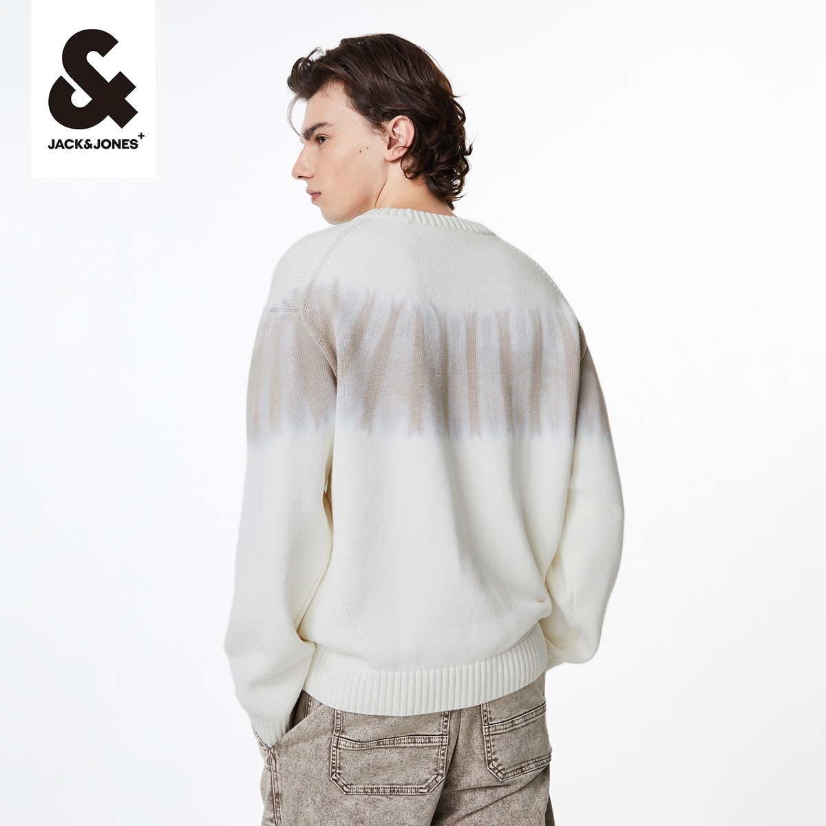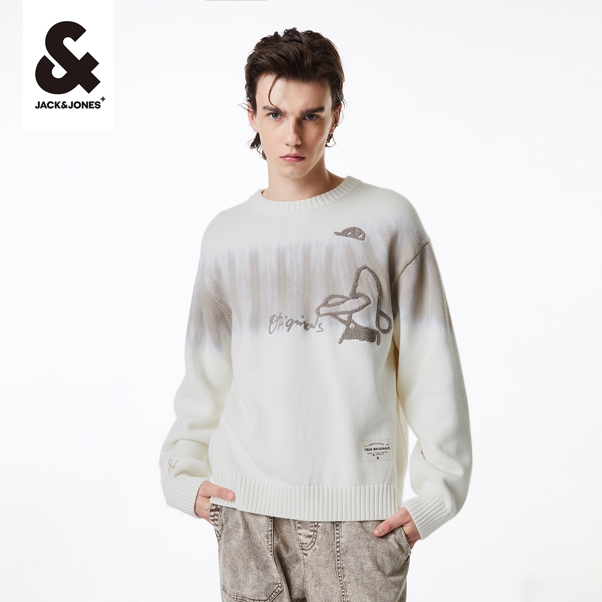 毛衣男装 杰克琼斯冬季 上衣宽松衣身撞色圆领套头针织衫 新款 男士