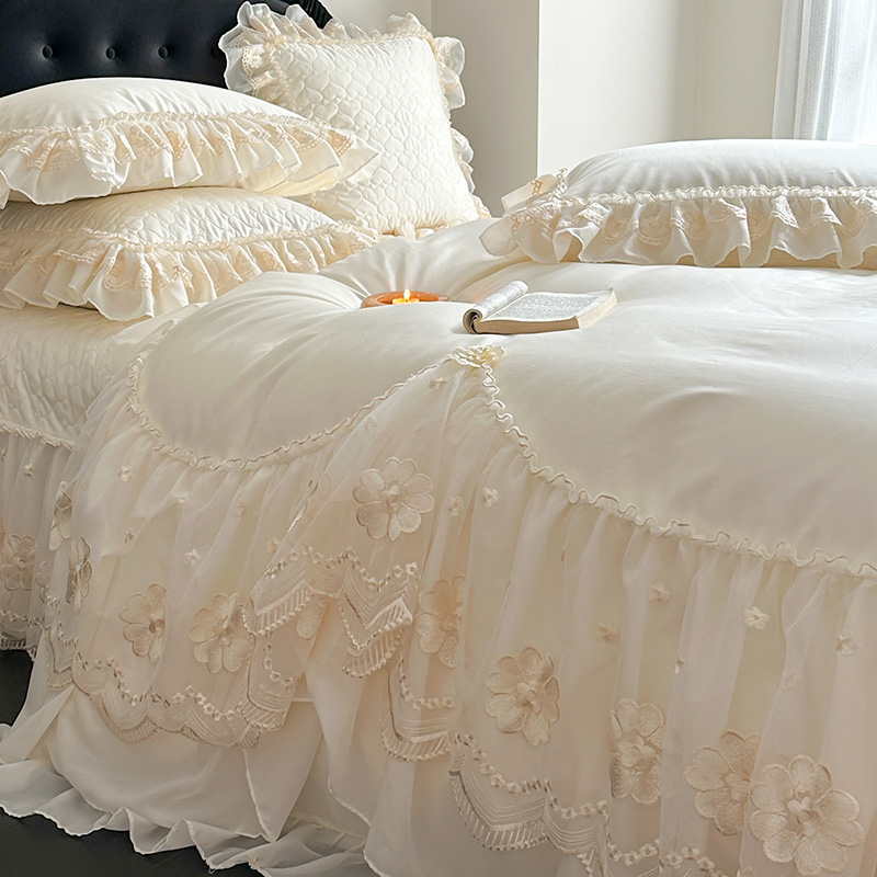 法式 少女心全棉长绒棉四件套公主风纯棉蕾丝花边被套夹棉床盖床品
