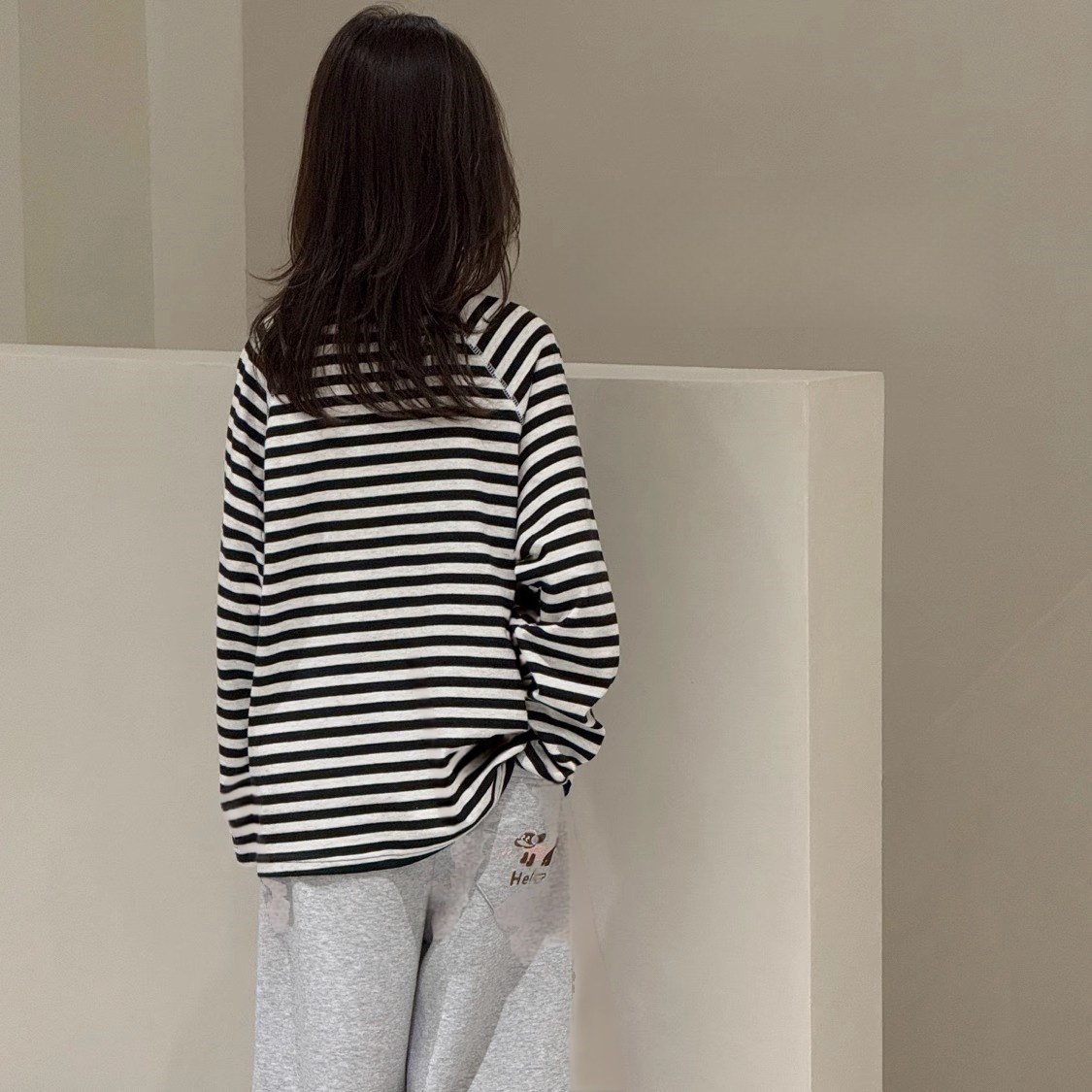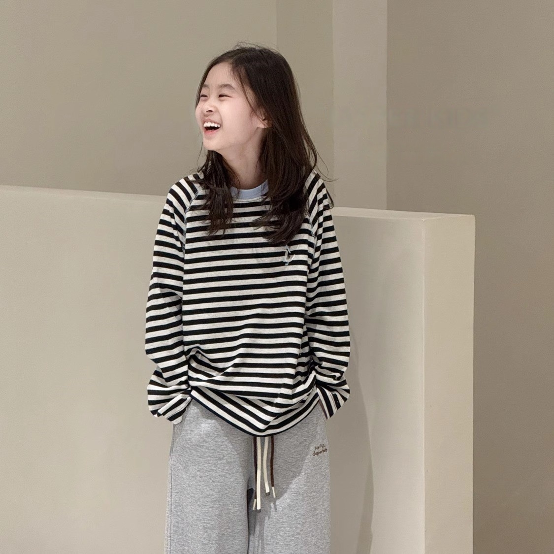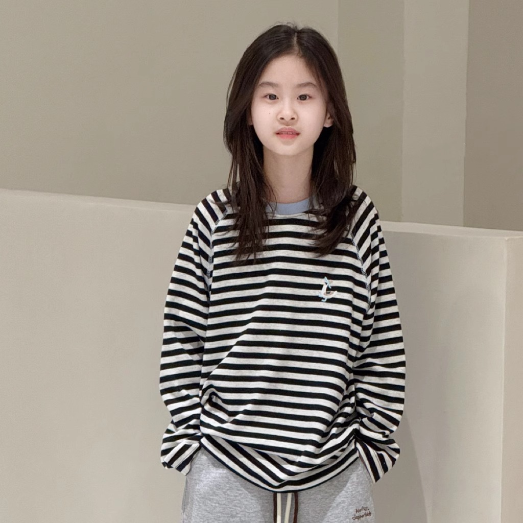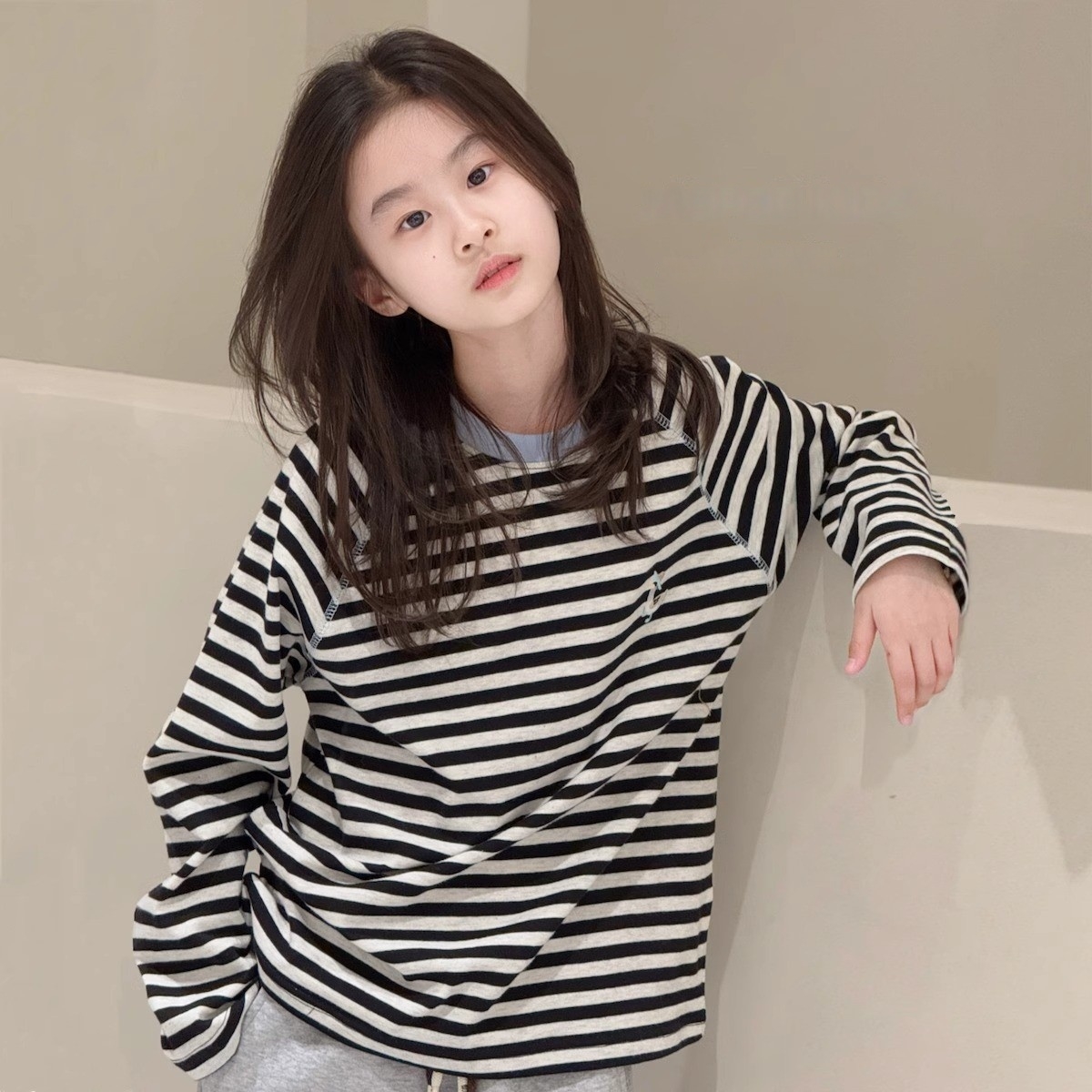 儿童圆领吸汗春装 女童春季 中大童洋气条纹T春秋款 T恤2025新款 长袖