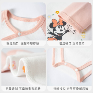 迪士尼婴儿包屁衣秋冬纯棉新生儿衣长袖 女宝哈衣三角爬服连体 四季