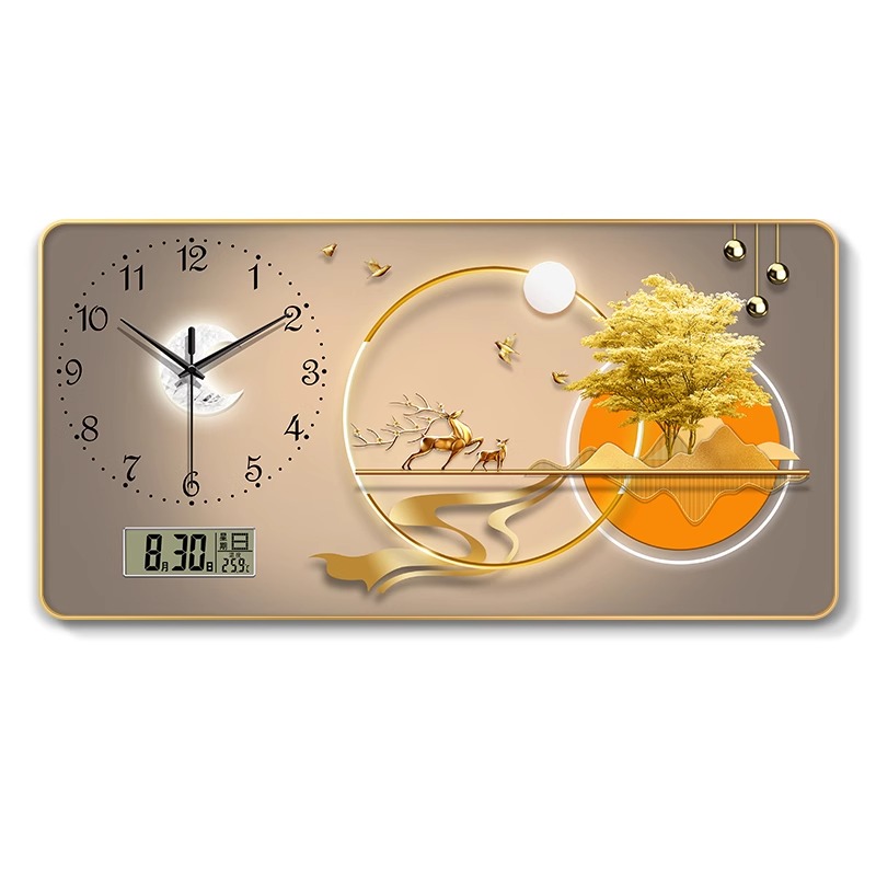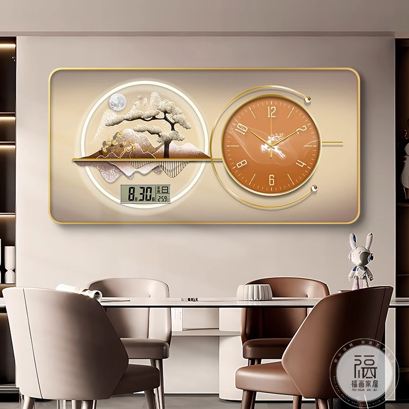 现代轻奢客厅钟表挂钟装 饰画家用万年历餐厅背景墙挂画电子钟日历