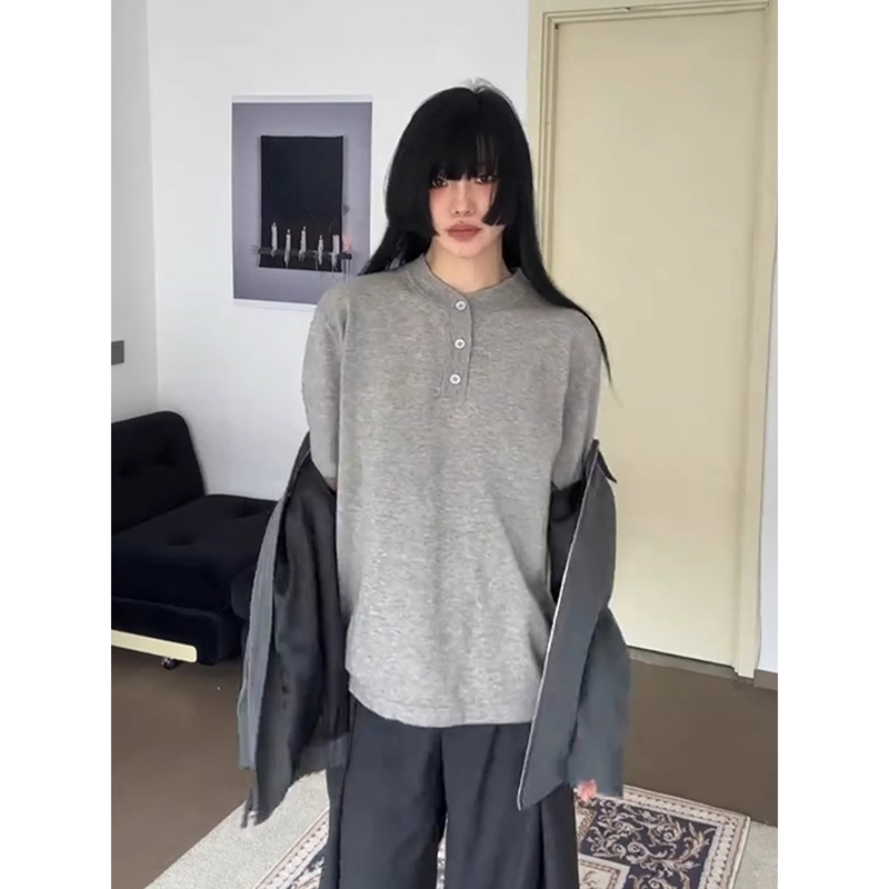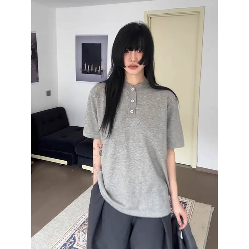 夏季 男款 排扣polo衫 t恤女美式 老钱风针织亨利衫 复古正肩半袖 短袖