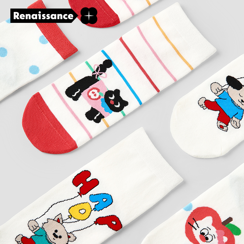 有棵树袜子纯棉女士秋冬7A抗菌透气中筒袜白色长筒袜 复古花纱