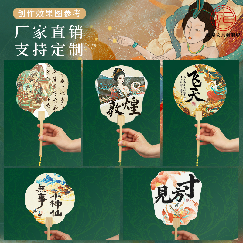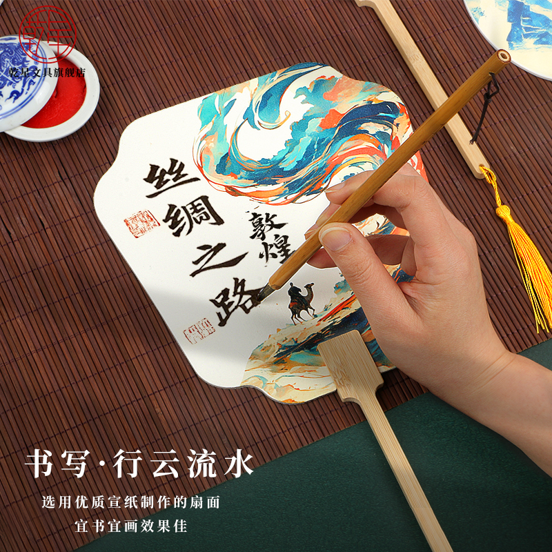 乾星新品 敦煌加厚宣纸团扇空白古风文创diy国画题字书法扇子定制