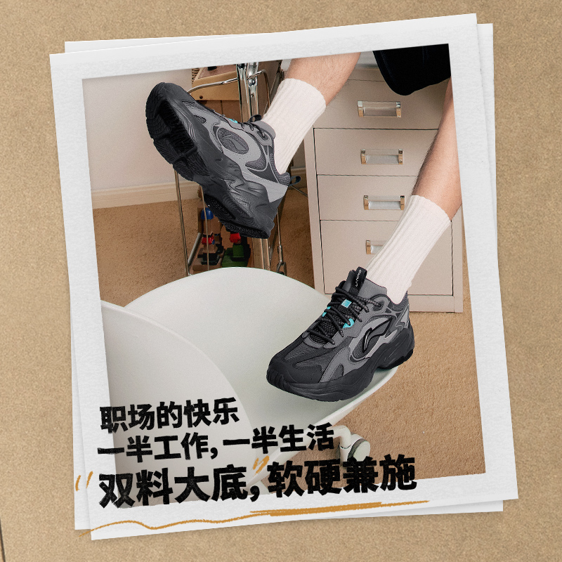 AGCU121 复古厚底透气增高轻便休闲老爹鞋 李宁运动鞋 男子春秋新款