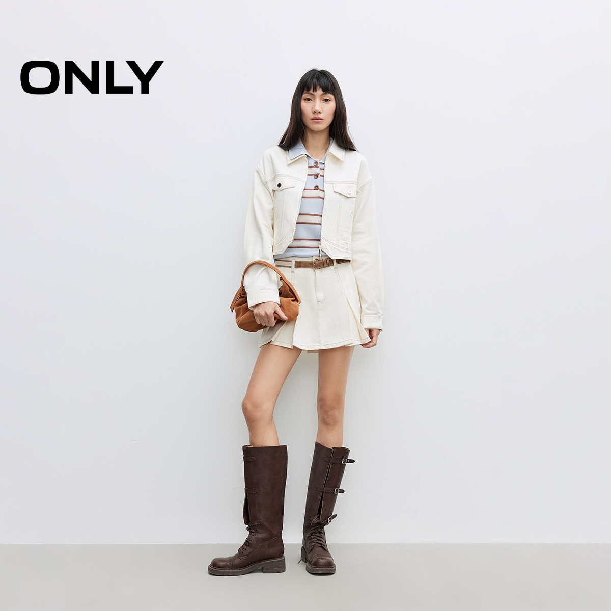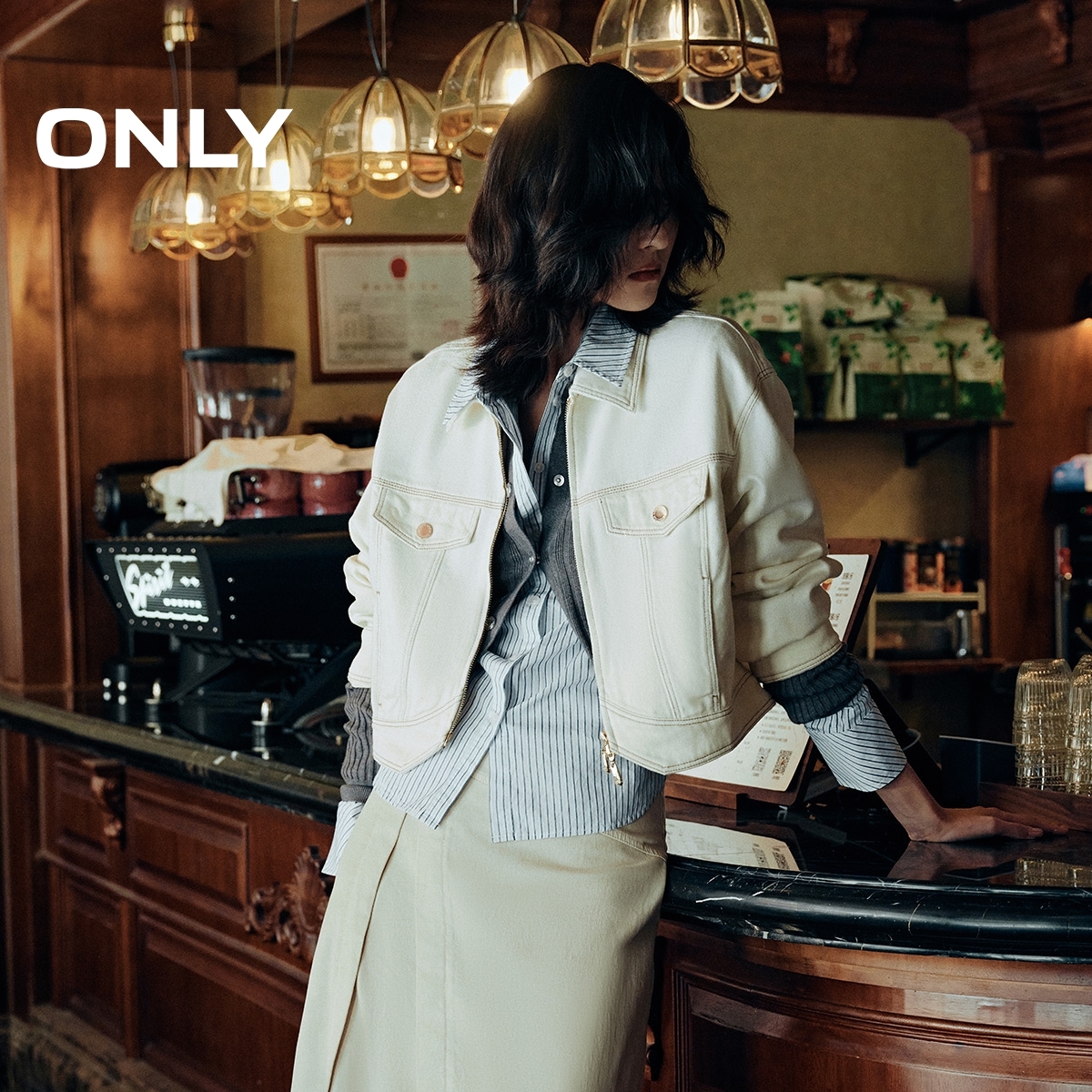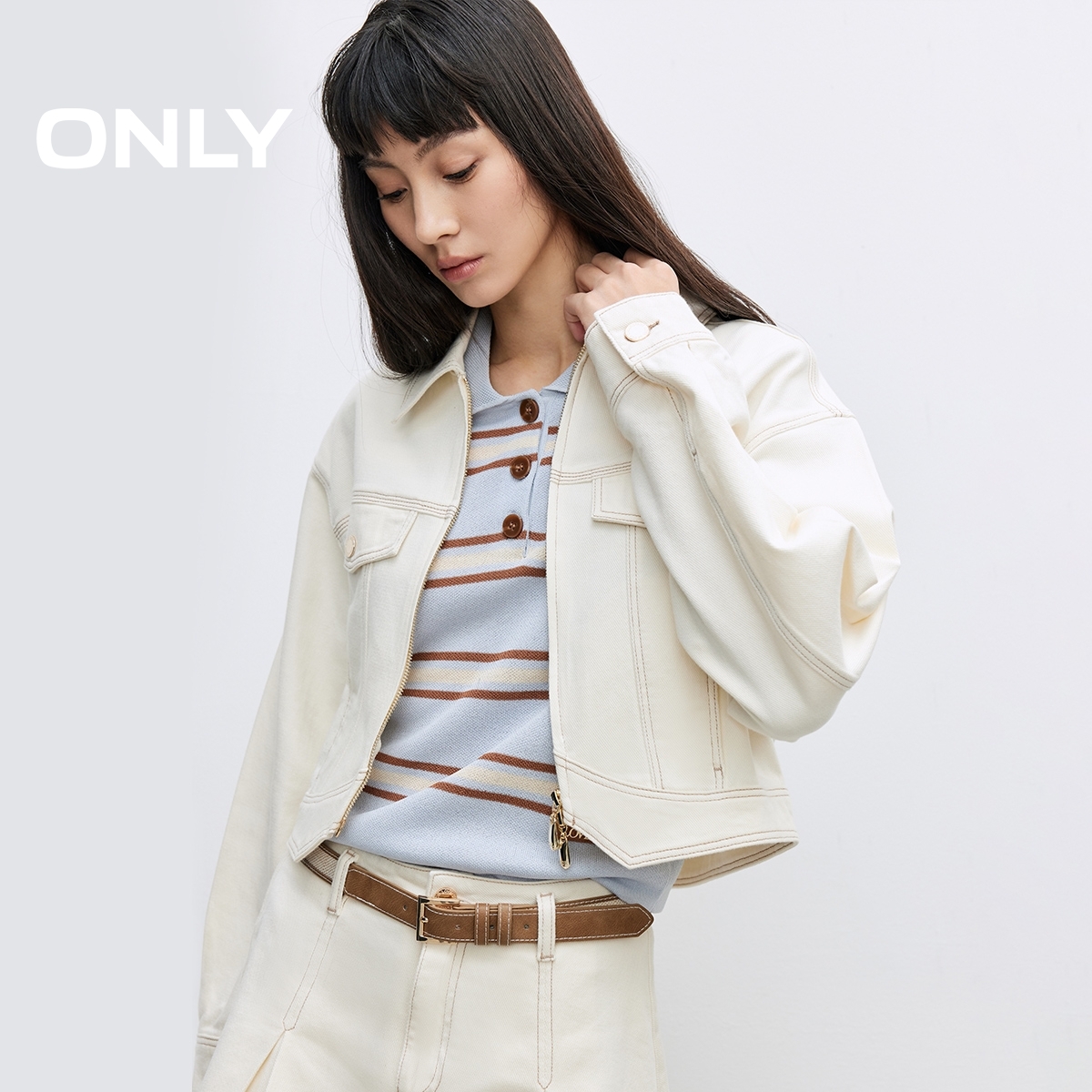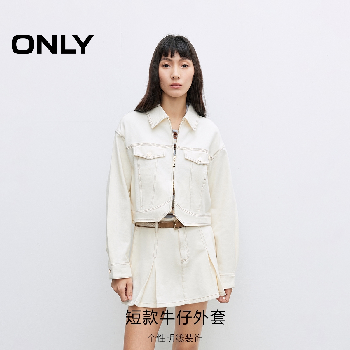 双向拉链翻领宽松牛仔外套女 落肩长袖 ONLY奥莱2025秋季 新款