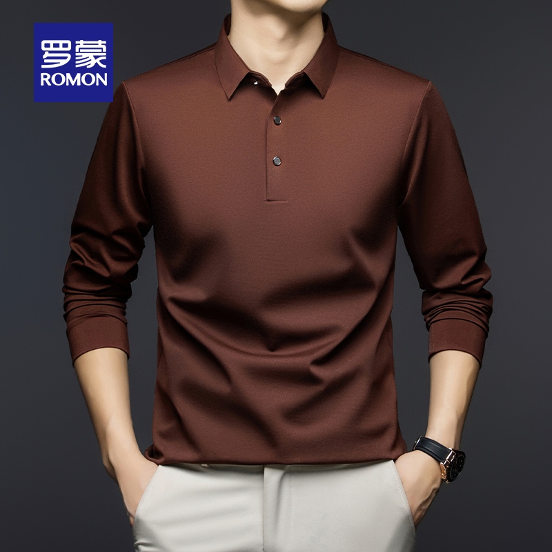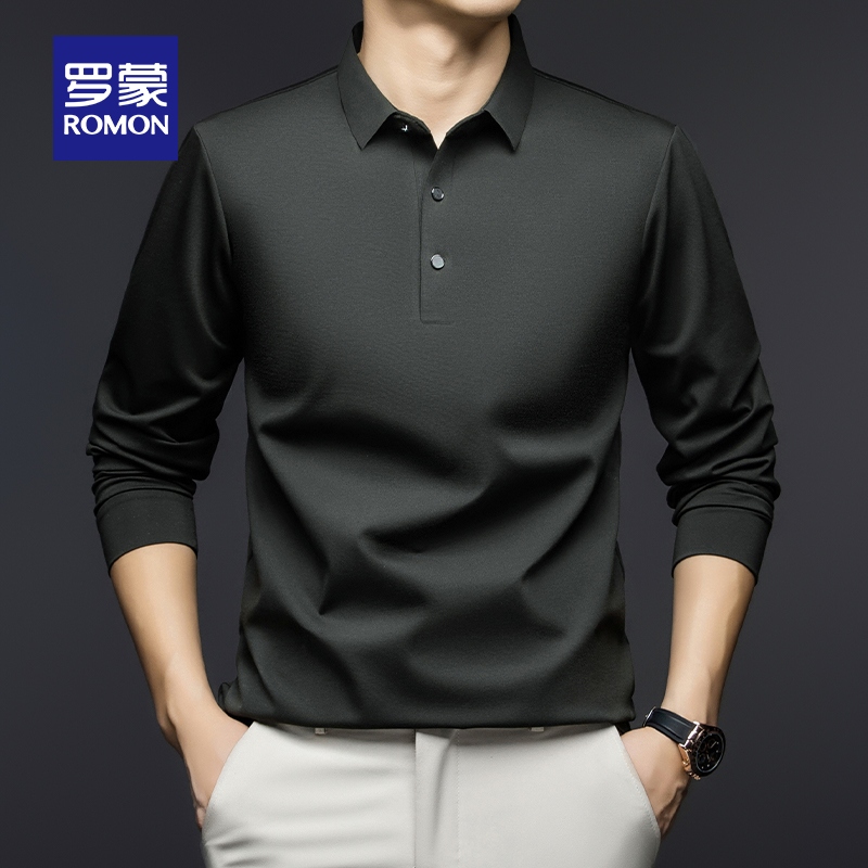 翻领长袖 罗蒙男士 Polo衫 2025秋季 商务休闲T恤衫 新款 高弹无痕