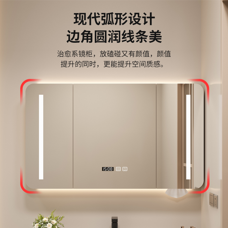 卫生间防水碳钢智能镜柜置物除雾照明镜柜挂墙式 单独镜柜收纳一体