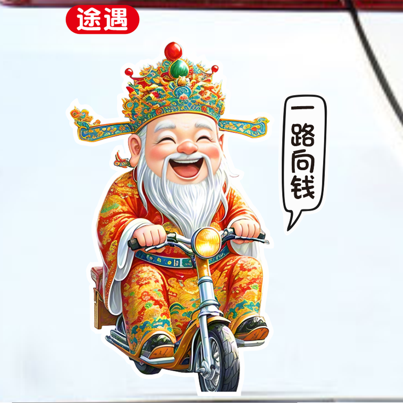 财神爷一路向钱电动车摩托车装 创意后尾窗贴纸 饰贴纸防水防晒个性