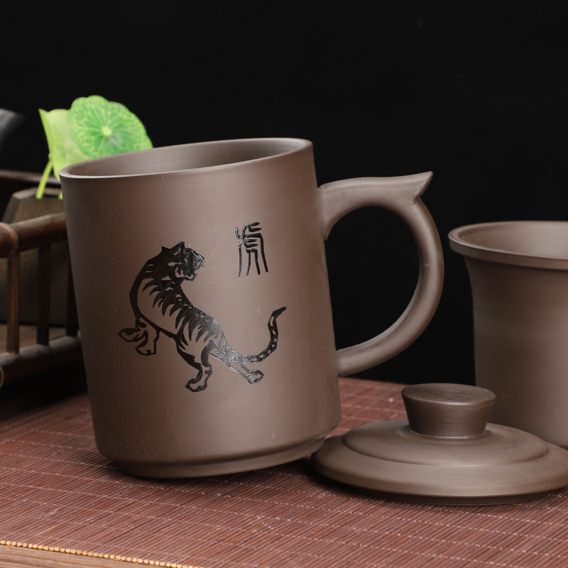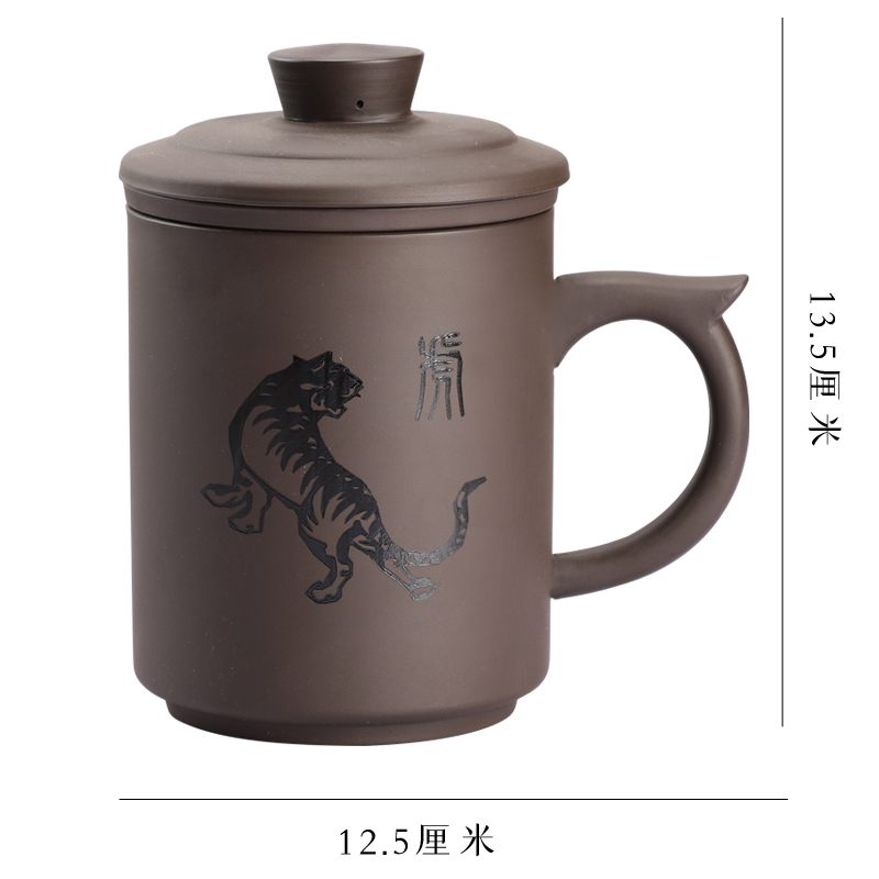 言仓线条小狗泡茶分离杯带滤托陶瓷水杯办公室茶杯生日礼物