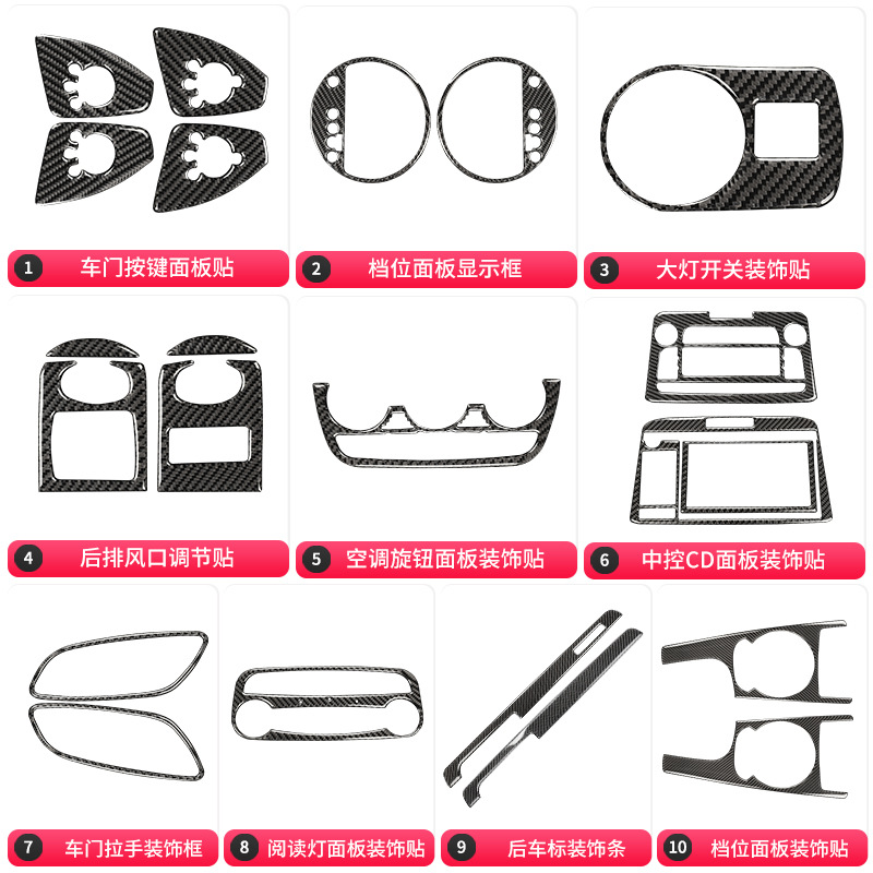 碳纤维内饰车门拉手内控版 奥迪TT改装 面按键饰贴面板 14款 适用08