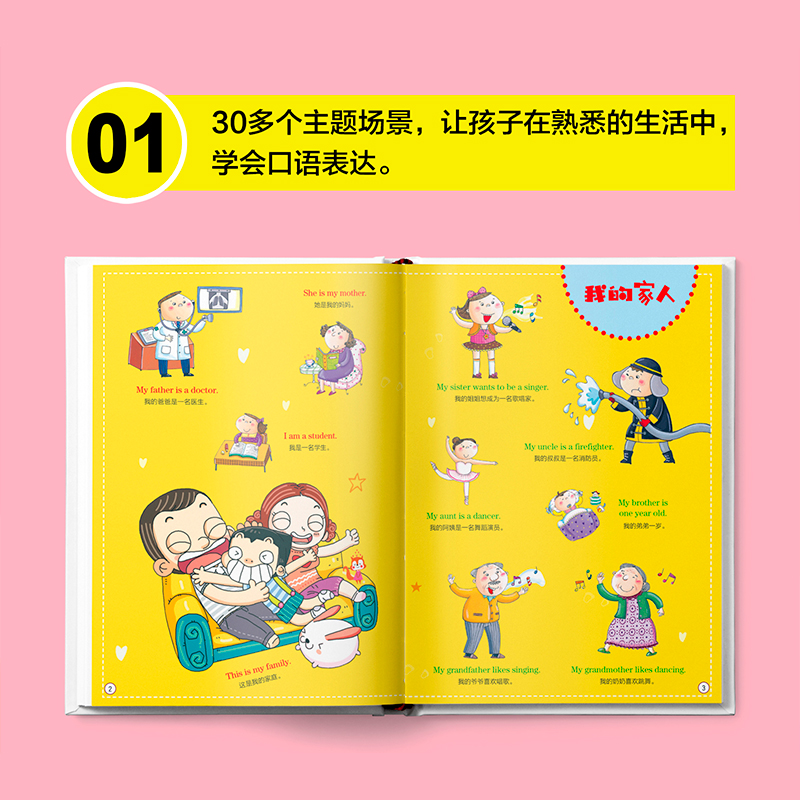 6岁少儿英语启蒙图画书幼儿园单词学习教辅书零基础少儿英语入门自学自然拼读法 儿童英语主题联想300句 中英文对照认知绘本