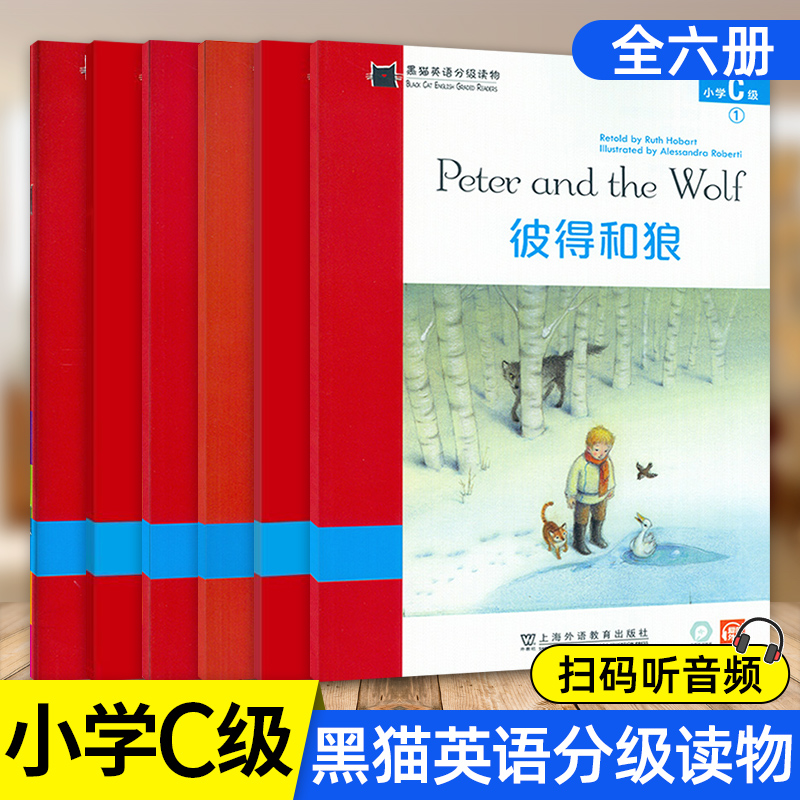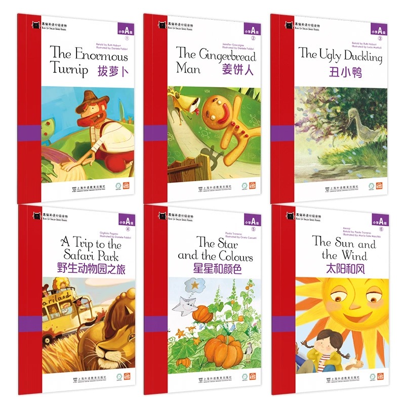 全套黑猫英语分级阅读读物小学ABCDE级123456 怪物伊索寓言课外读物英语绘本 萝卜太阳和风小红帽长发姑娘母鸡潘妮丛林之书盒子里