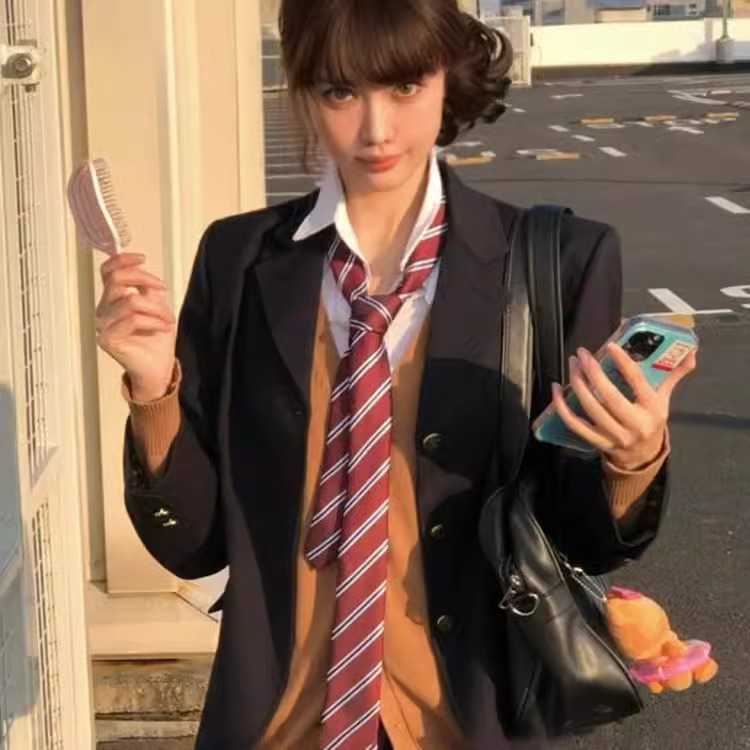 免打系脖配饰职业围巾丝带 西装 美式 复古风酒红色条纹手打领带衬衫