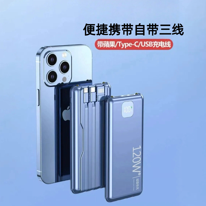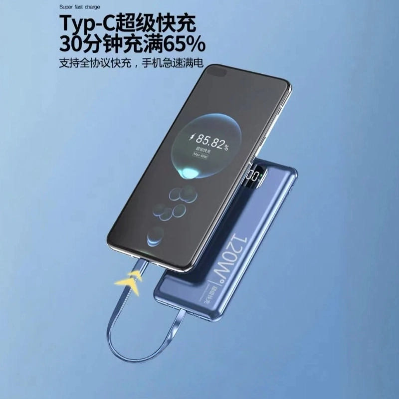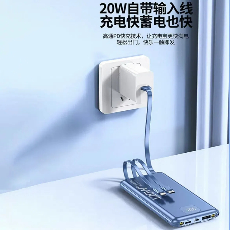 超级快充电宝超大容量20000毫安超薄小巧便携自带线闪充户外移动电源适用手机 可上飞机正品 新国标3C认证
