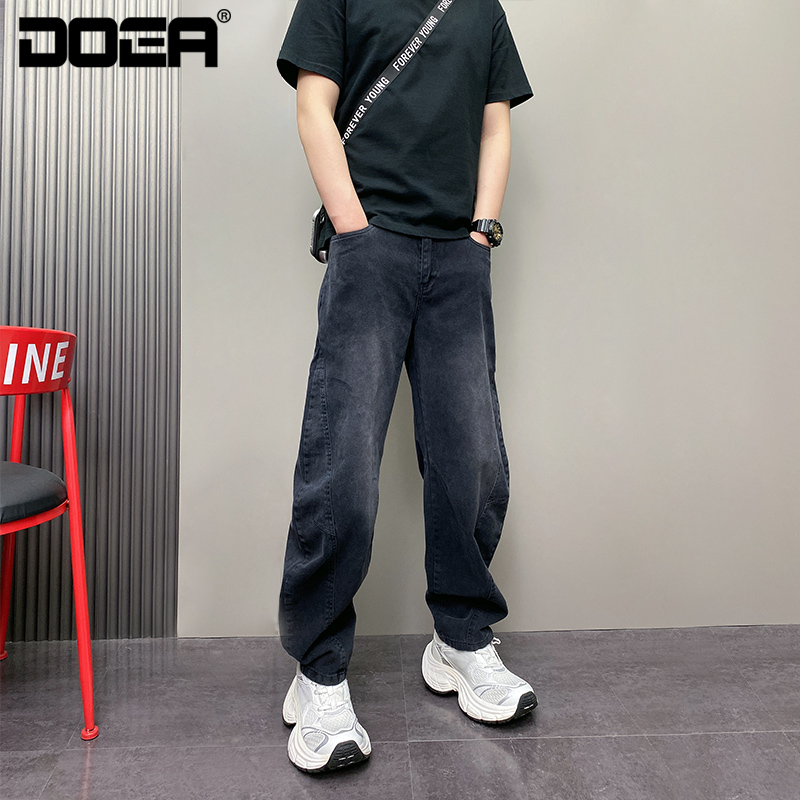 做旧牛仔裤 复古休闲裤 男士 弯刀宽松直筒裤 2025春夏季 阔腿长裤 新款