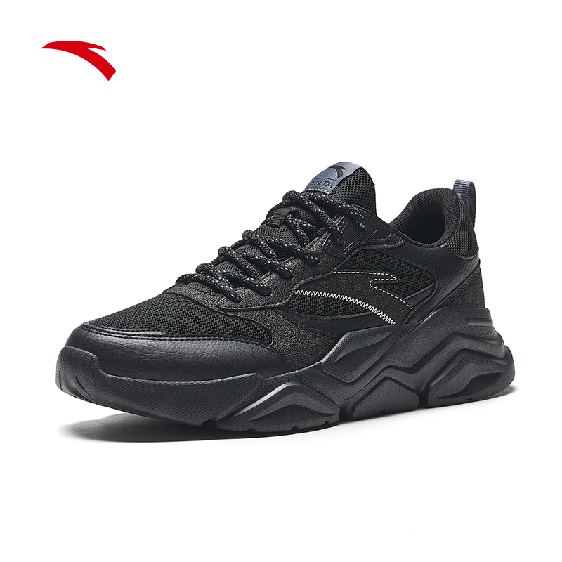 男款 2025新款 秋季 安踏小老爹 男鞋 厚底休闲鞋 黑色皮面运动鞋 经典