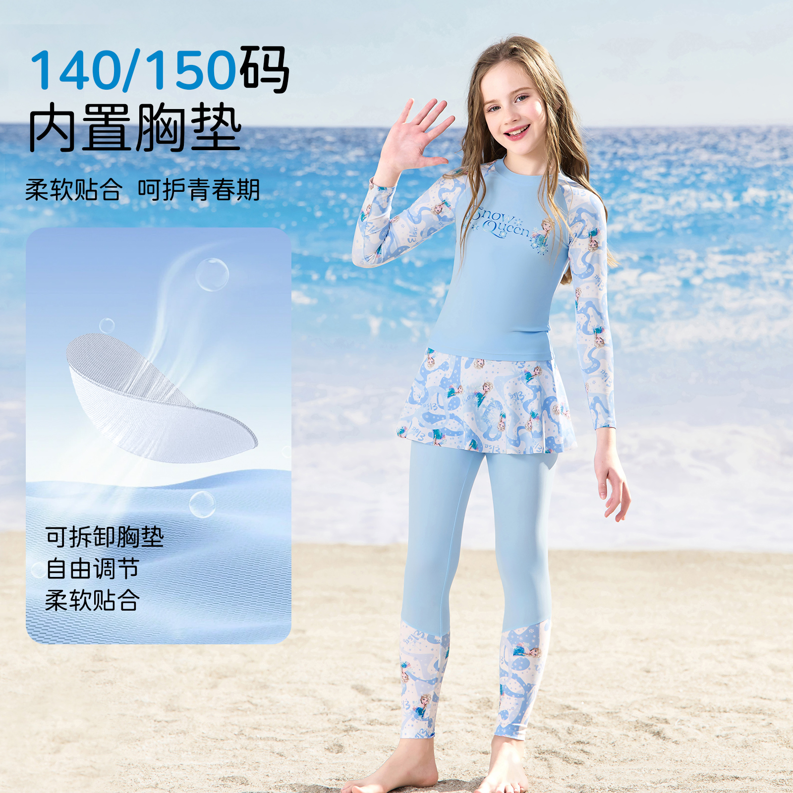 游泳套装 保暖游泳衣2025新款 长裤 迪士尼儿童泳衣女孩女童分体长袖