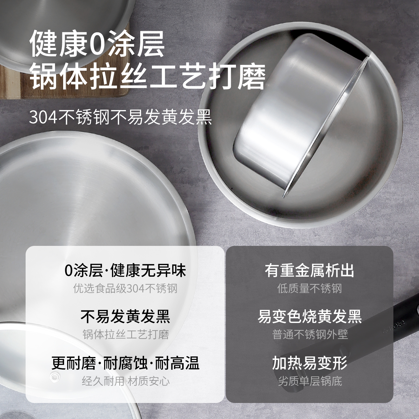 卡罗特奶锅不锈钢宝宝辅食锅无涂层手柄可拆卸锅蒸煮一体煮面锅