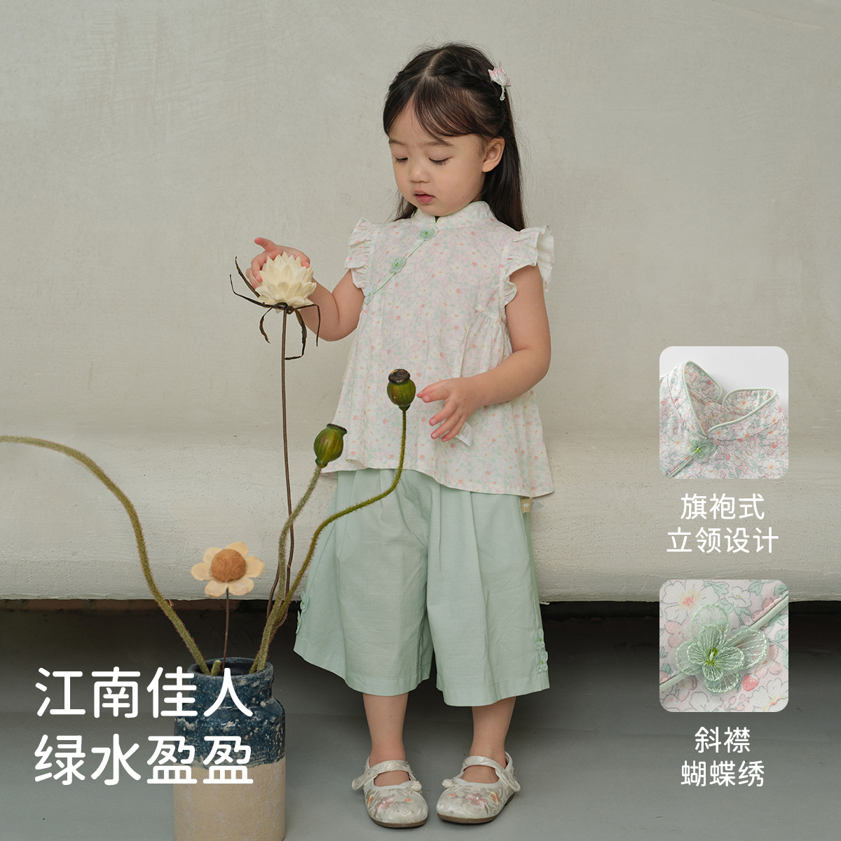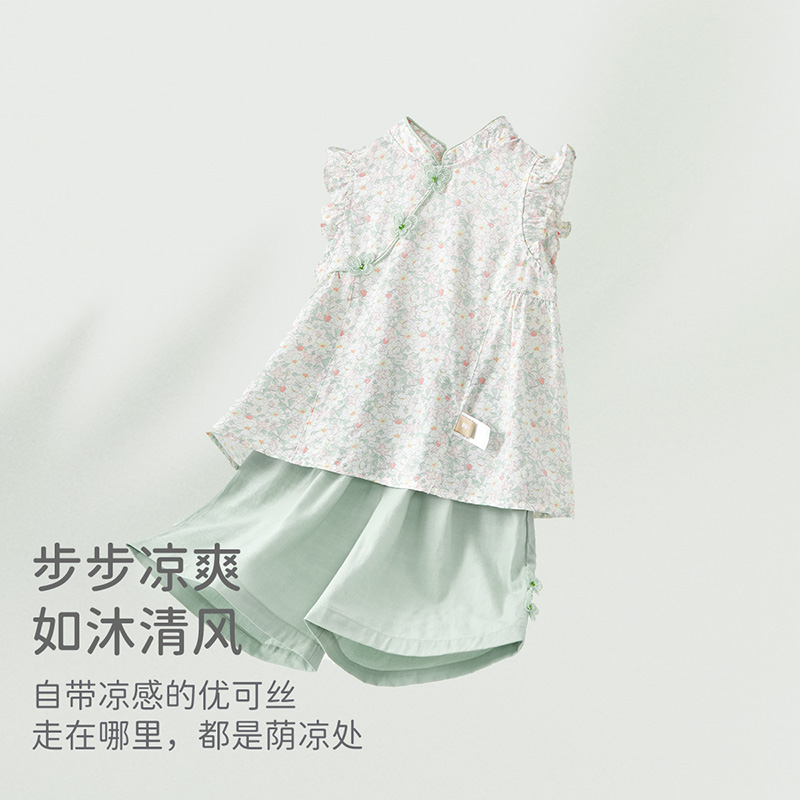 新款 2025夏装 中大童抗菌国风两件套 套装 戴维贝拉女童凉感七分裤