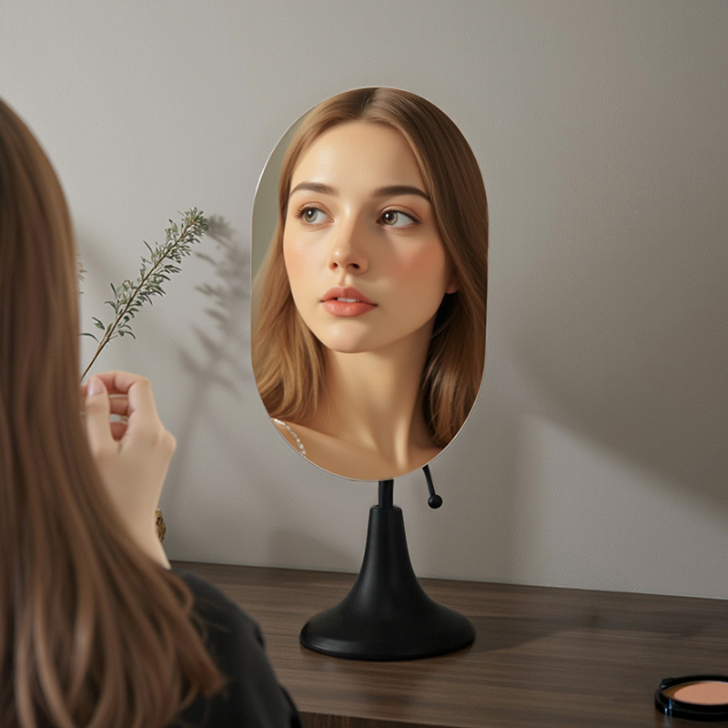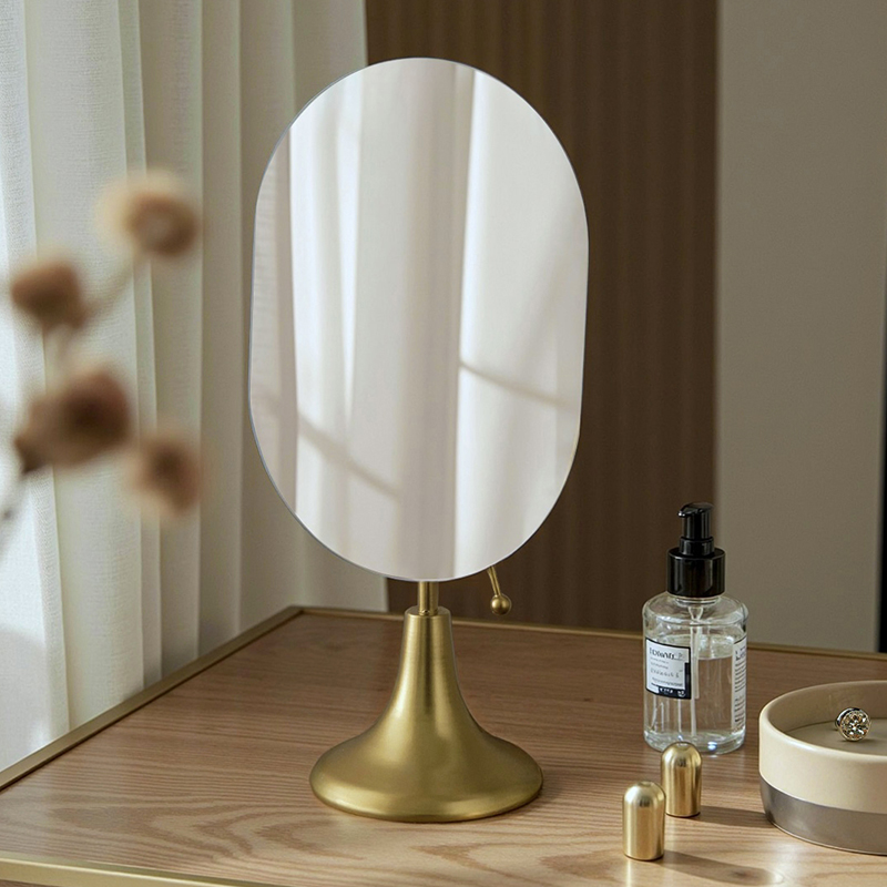 轻奢高级台式 主卧卧室现代简约梳妆台金属镜子 桌面化妆镜2025新款