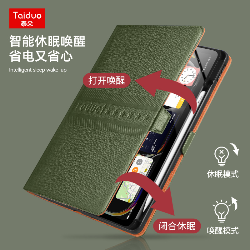 A2228 适用于iPadPro11 平板保护壳真皮翻盖磁吸壳11英寸A2836 带笔槽真皮保护套苹果iPadpro2024新款 3006