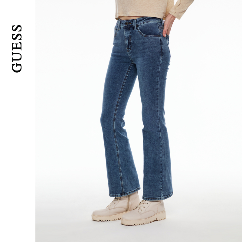 GUESS女士复古港风水洗加绒直筒牛仔长裤 YO4D9192
