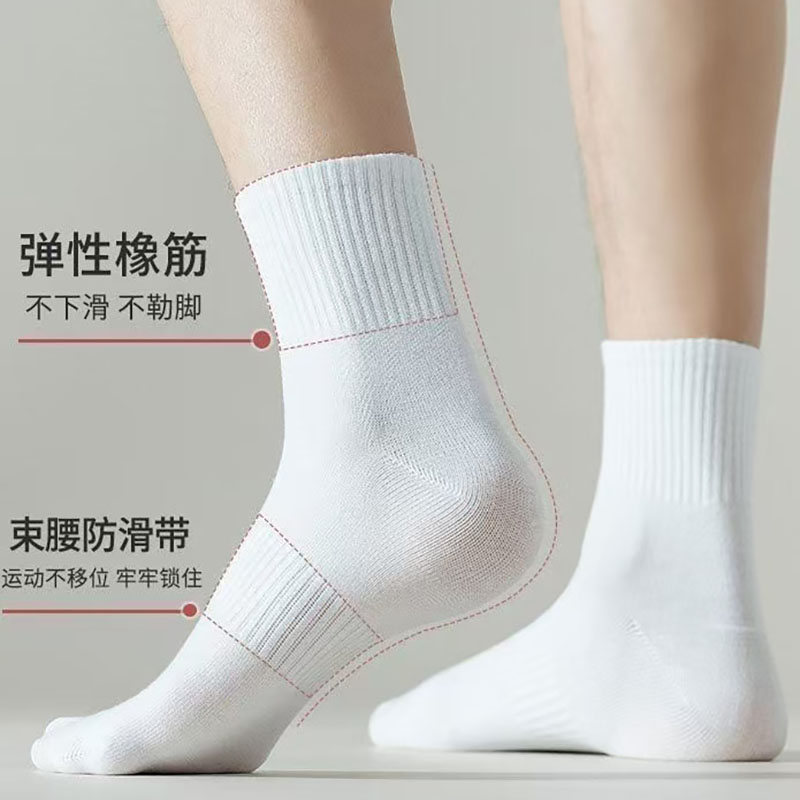 恒源祥诸暨袜子男士 纯棉吸汗防臭运动短袜夏天白色中筒袜男袜 夏季