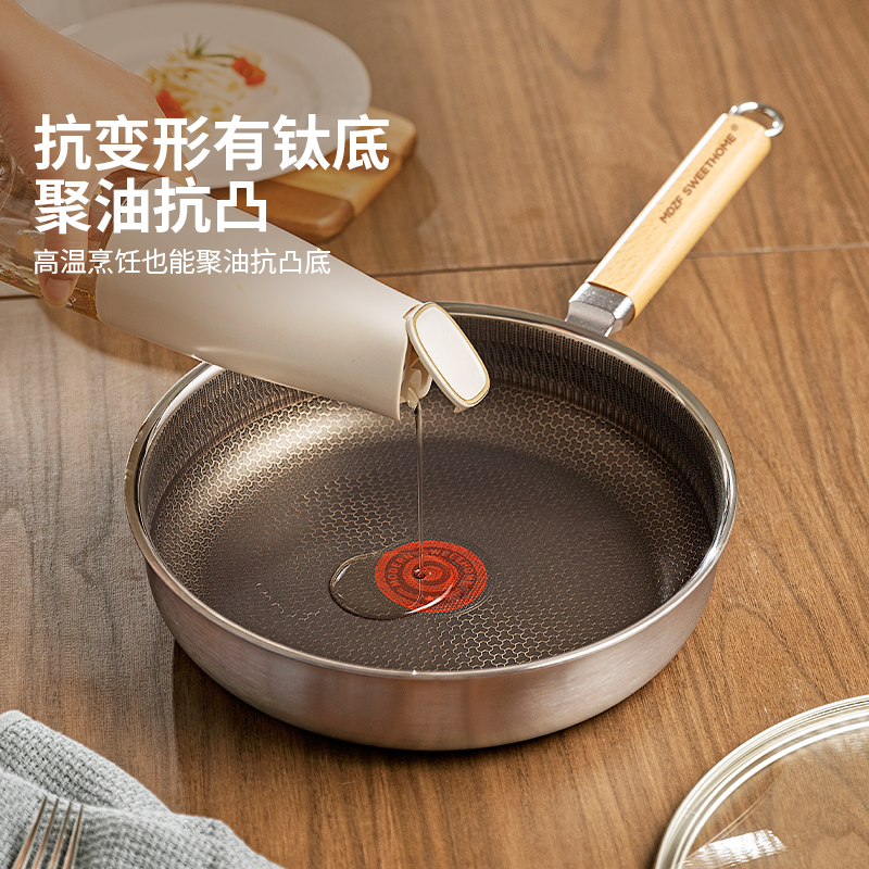摩登主妇钛不锈钢平底锅炒菜家用不粘电磁炉燃气灶牛排加深煎炒锅