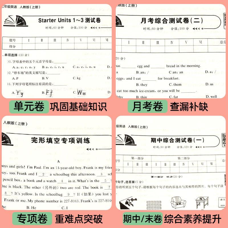 初一上册全套试卷同步练习册必刷题七年级下册测试卷数学人教版 评价语数英 初中道德与法治语文英语生物地理历史小四门卷子7新版