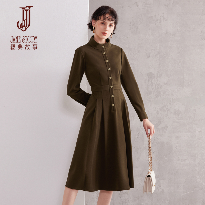 2025年半高领针织连衣裙女秋冬新款 大摆裙 时髦气质收腰显瘦中长款