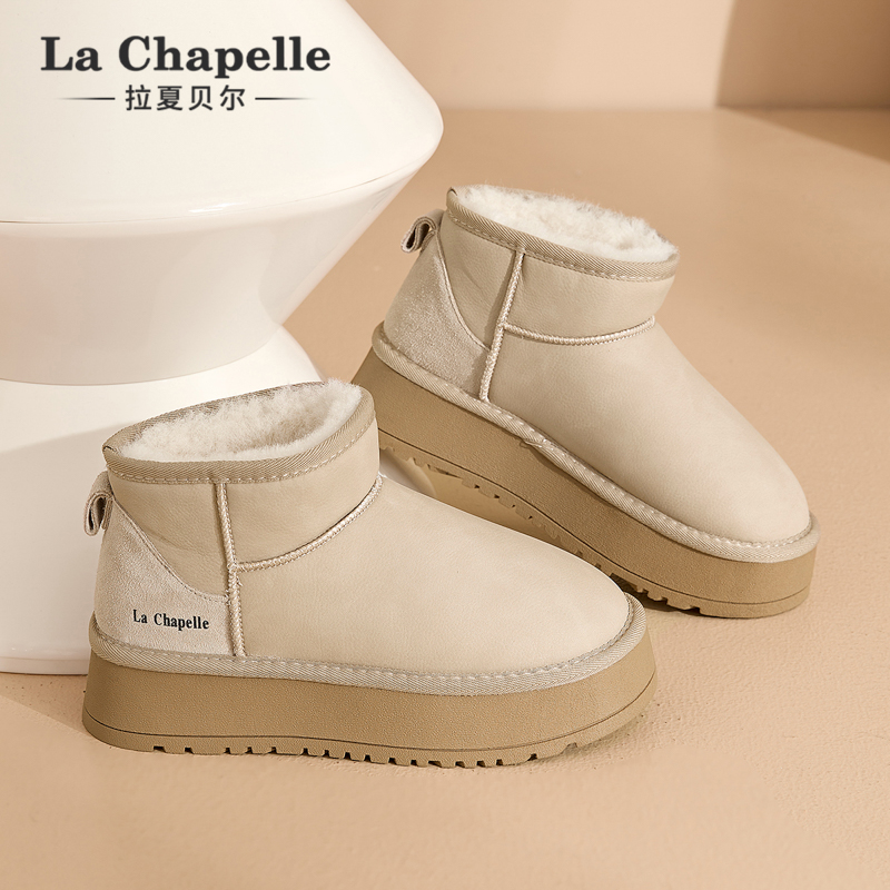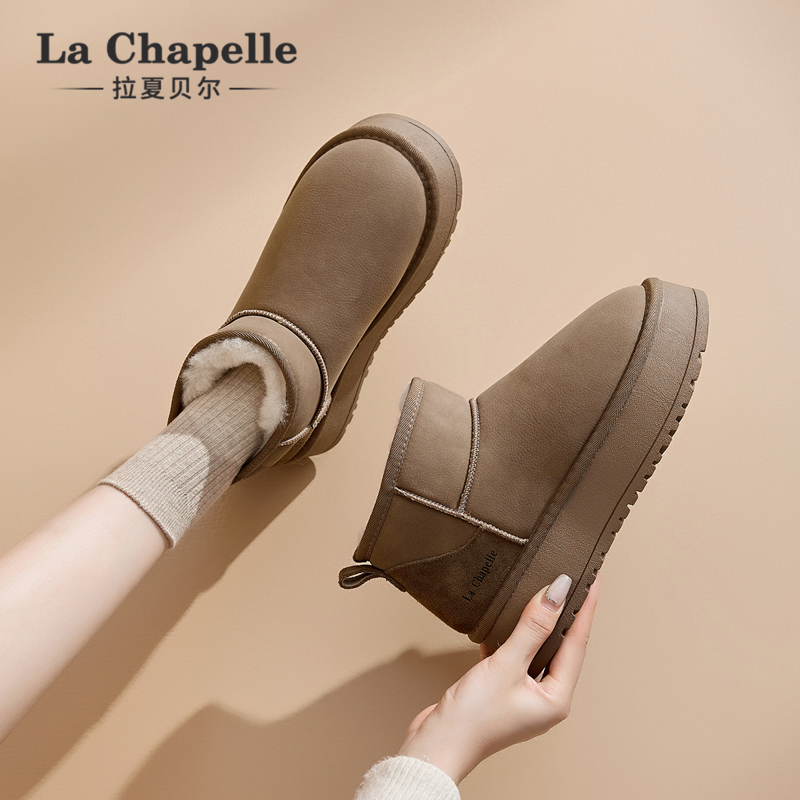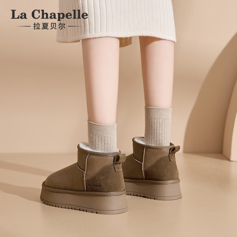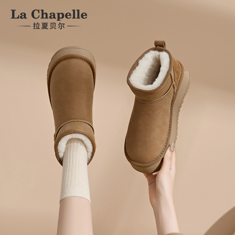 冬鞋 厚底短靴加绒加厚大棉鞋 子 新款 拉夏贝尔真皮雪地靴女2025冬季