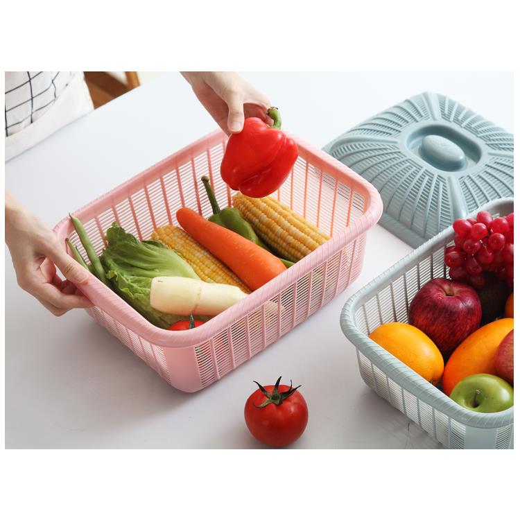 碗筷收纳带盖放馒头框水果蔬筛沥水洗菜篮子家用大号塑料装 馍馍筐