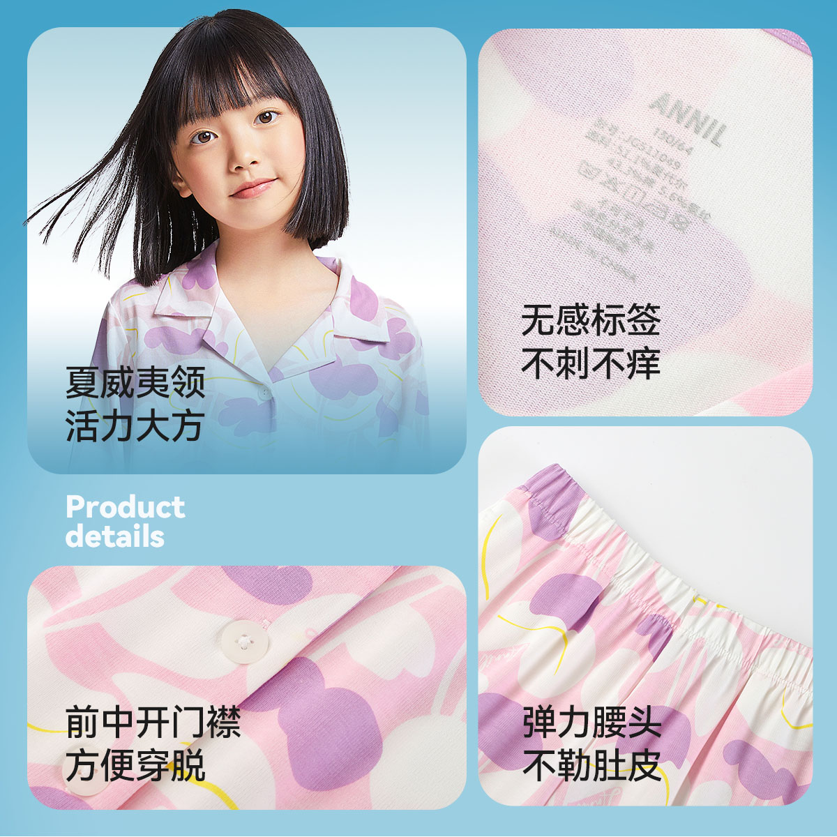 2025春新款 女童家居服套装 安奈儿童装 吸湿弹力宽松 5A级抗菌