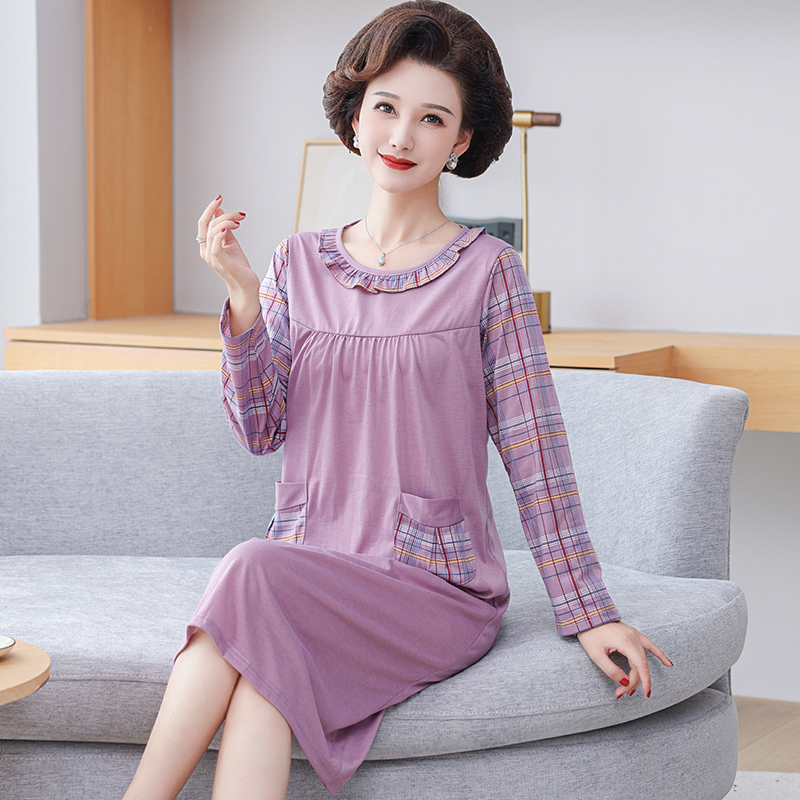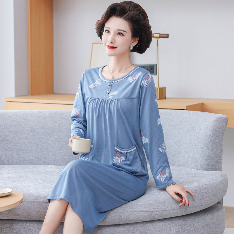 浴袍秋冬家居服 睡衣休闲慵懒风睡裙大码 轩靓睡袍女春秋季 纯棉长袖