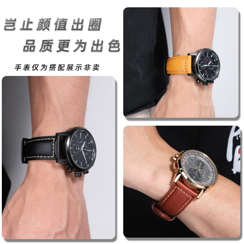天姵适配西铁城光动能三眼计时CA0690 CA0615真皮手表带男 CA0695
